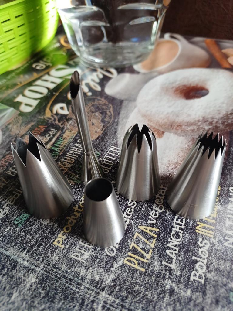 O pacote chegou em Odessa em 21 dias. Bicos como na descrição, grandes e de boa qualidade. O preço é agradável - 100 hryvnias por cinco peças. Vou tentar para éclairs. Obrigado ao vendedor e ao Joom.