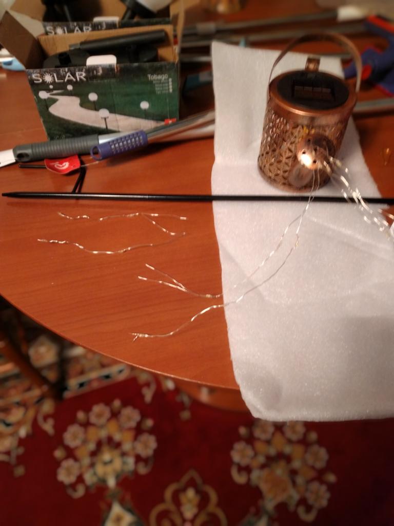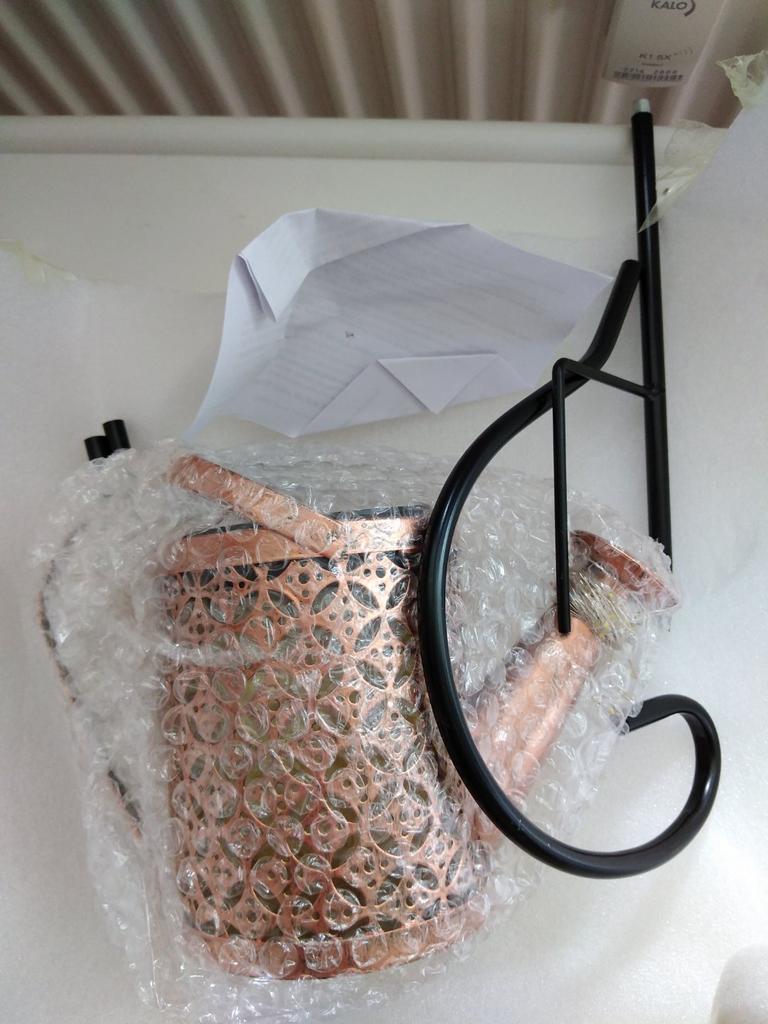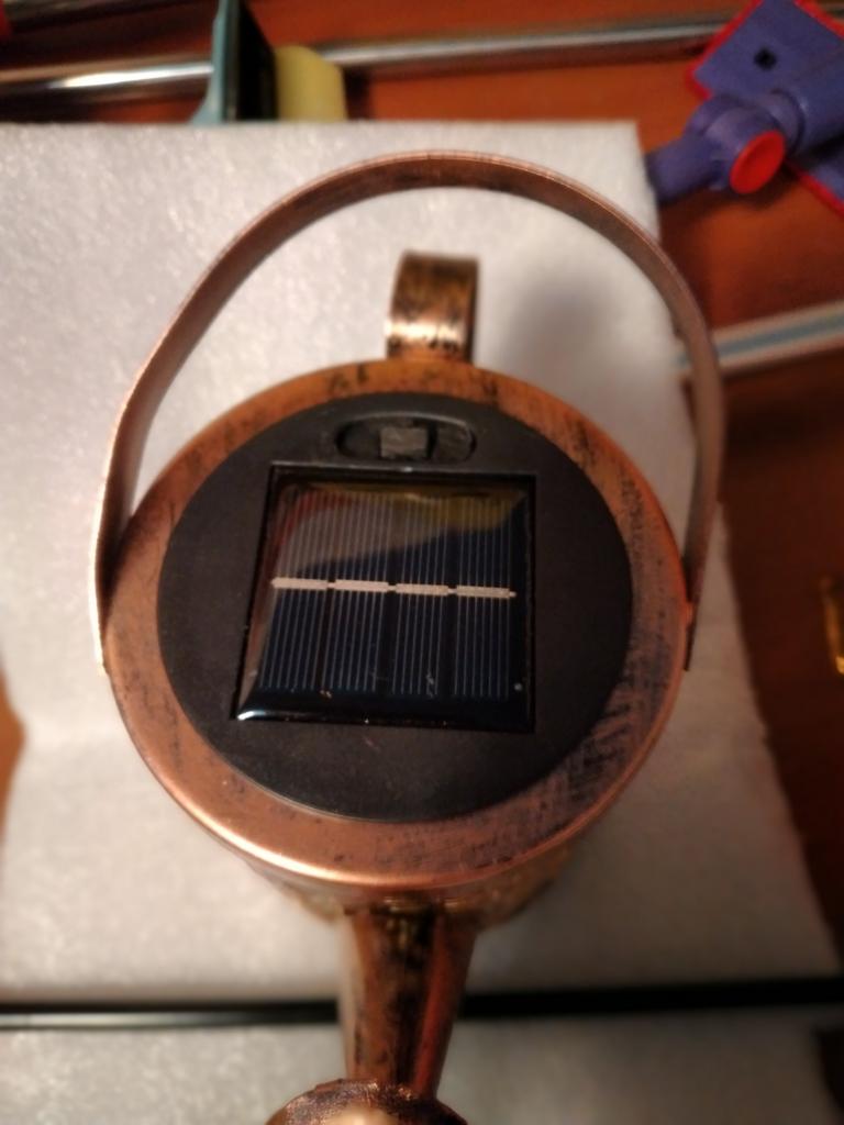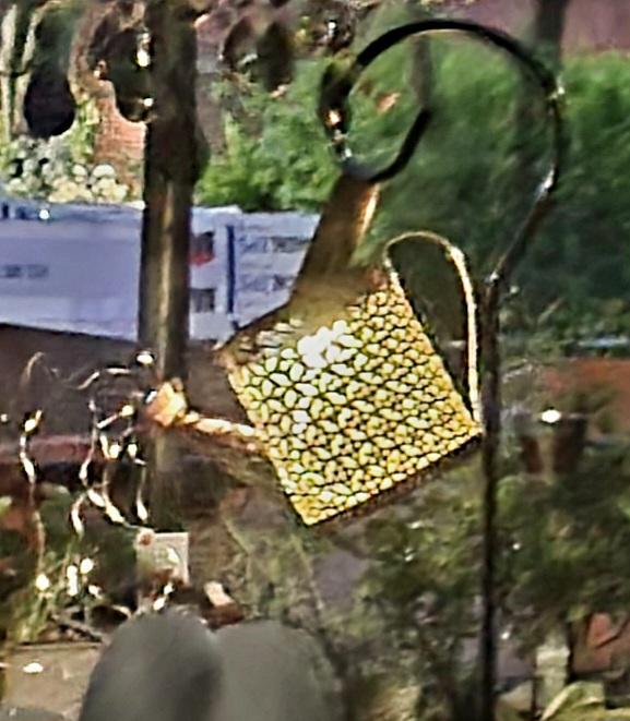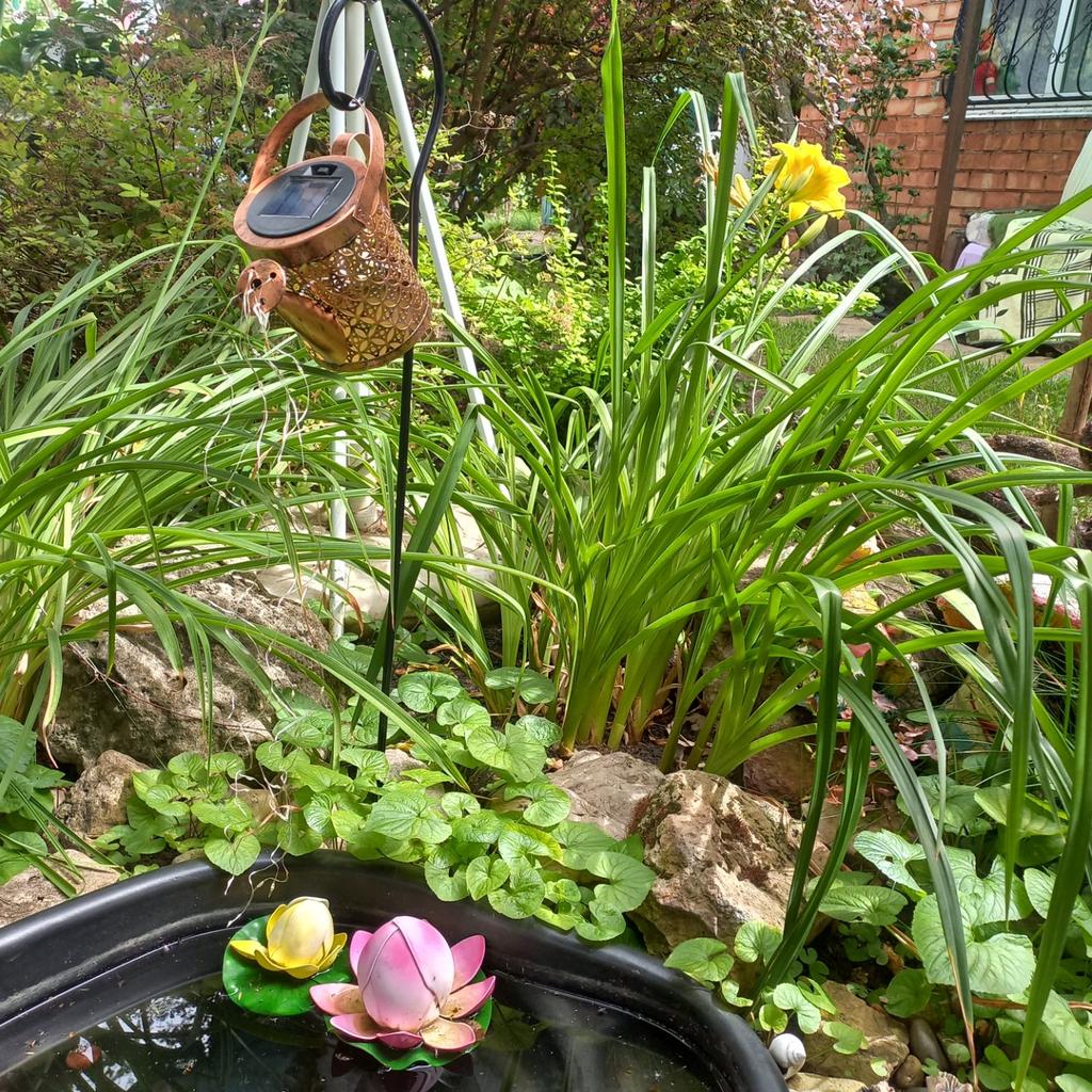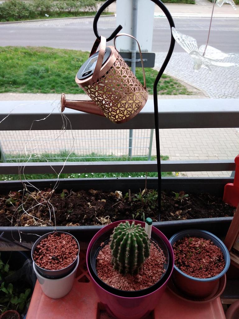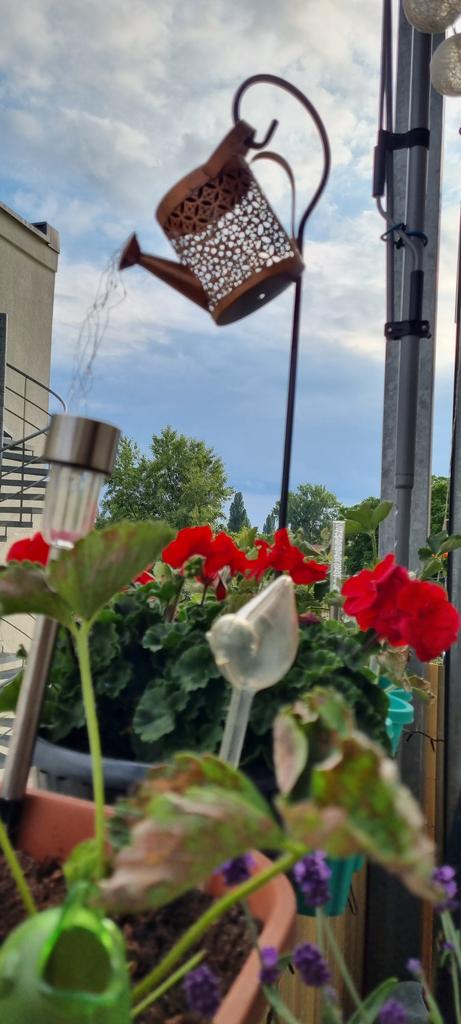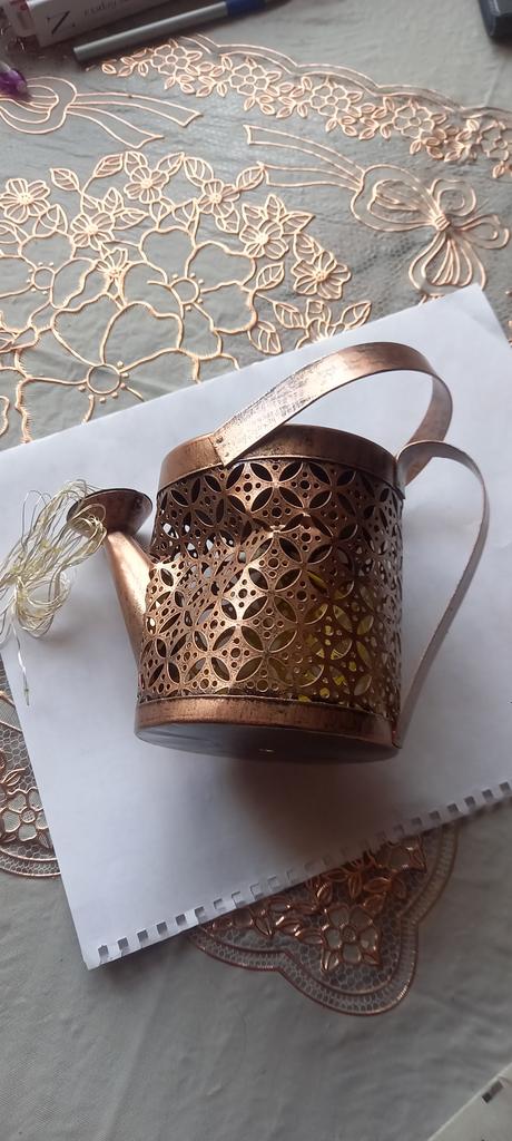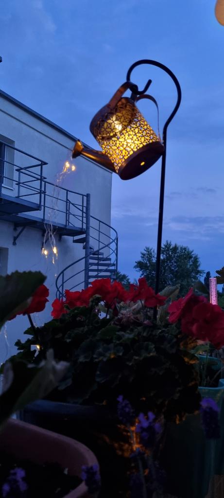 Um regador decorativo muito bonito. A haste é para aparafusar. O Kann parece ter funcionado bem. A cadeia de luzes brilha lindamente e alternadamente. Estou muito satisfeito