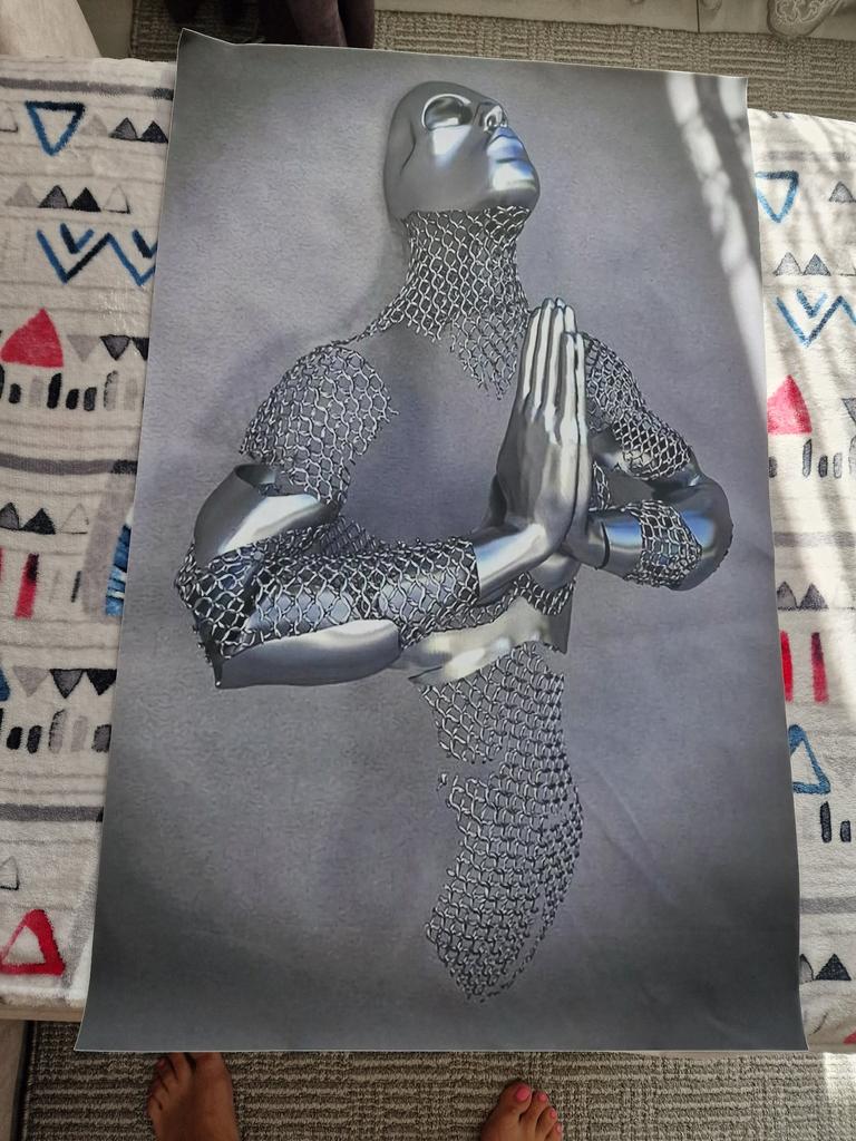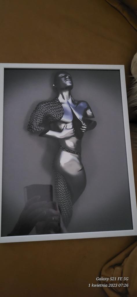 Na foto você pode ver uma moldura com a foto. Não, você não vai conseguir isso com o pôster. Ele vem barato enrolado e conectado com um pedaço de elástico....
