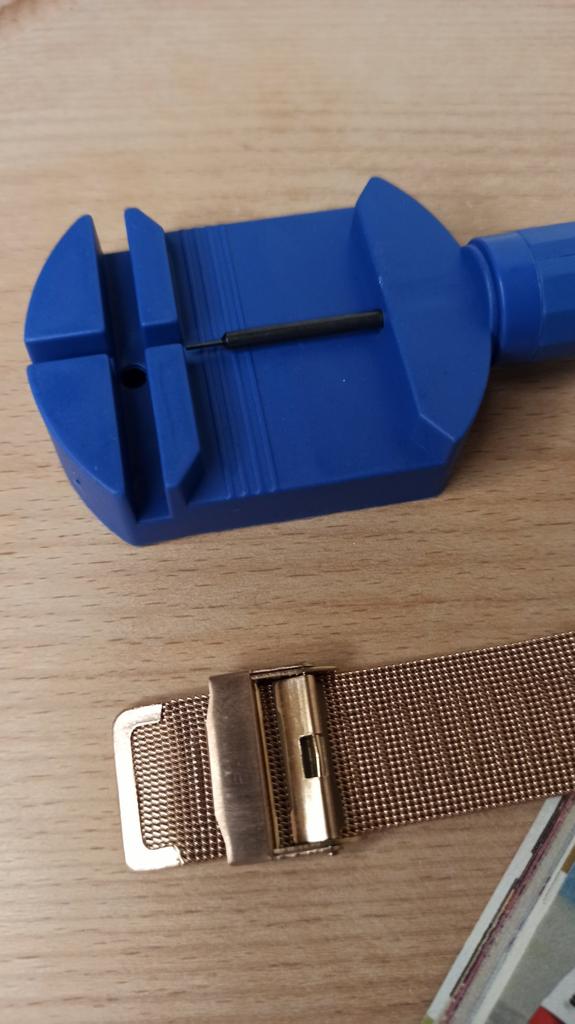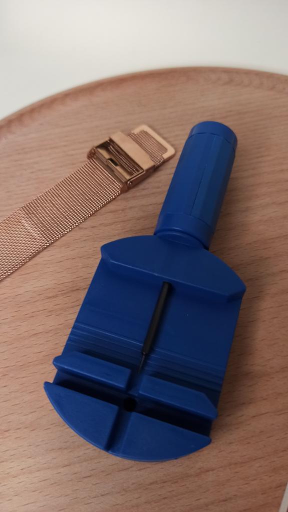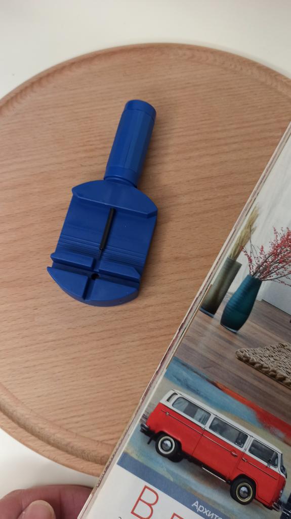 Como tenho que trocar laboriosamente a pulseira do relógio do meu chefe a cada 6 meses, comprei este ótimo gadget! Enfiar as hastes de metal funciona muito mais fácil. O envio demorou 2 semanas.