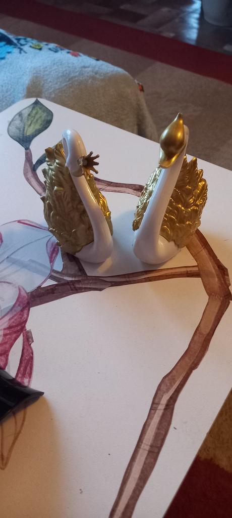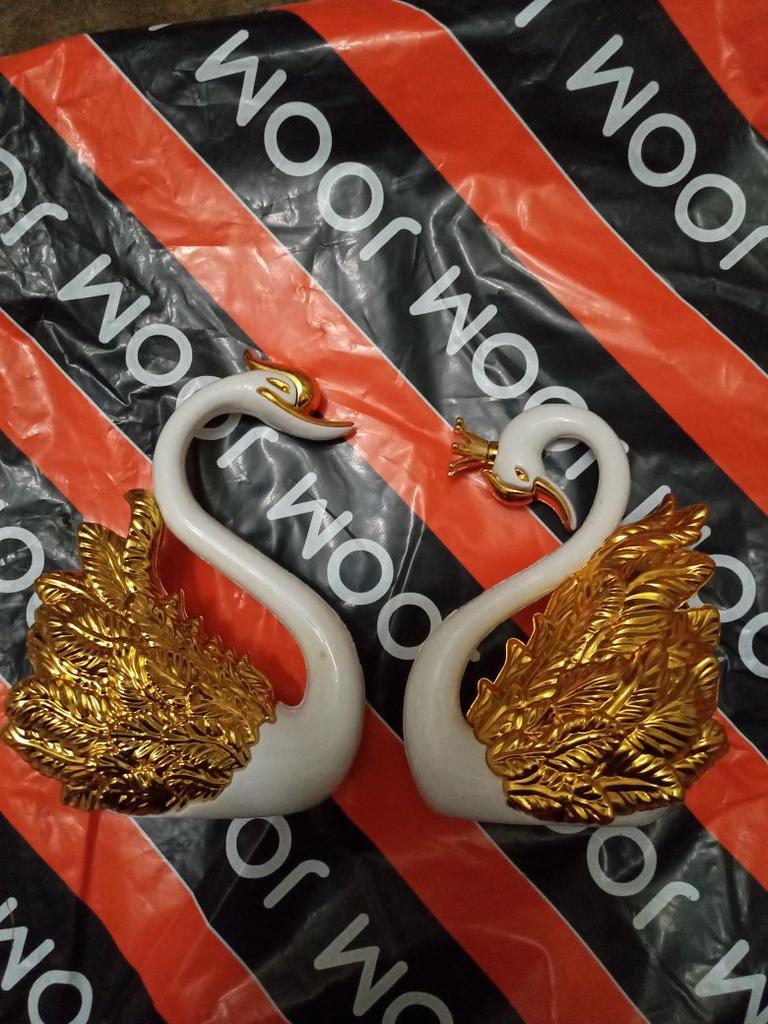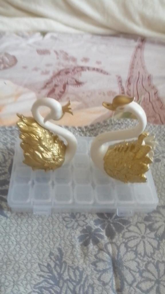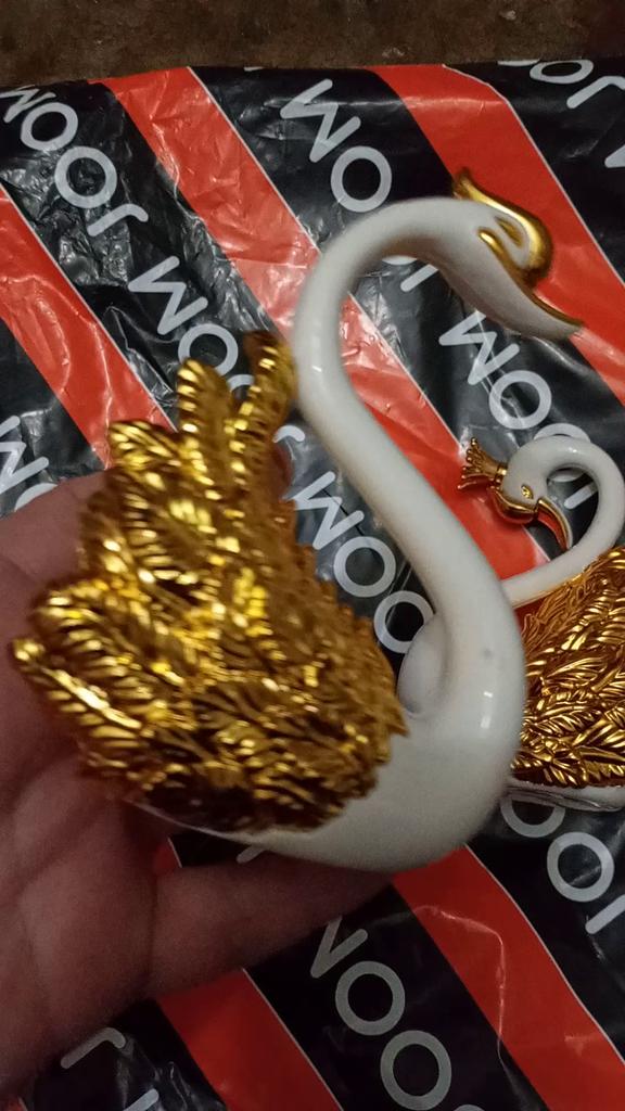 A coroa do cisne veio quebrada e foi enviada quebrada porque foi pintada onde estava quebrada.