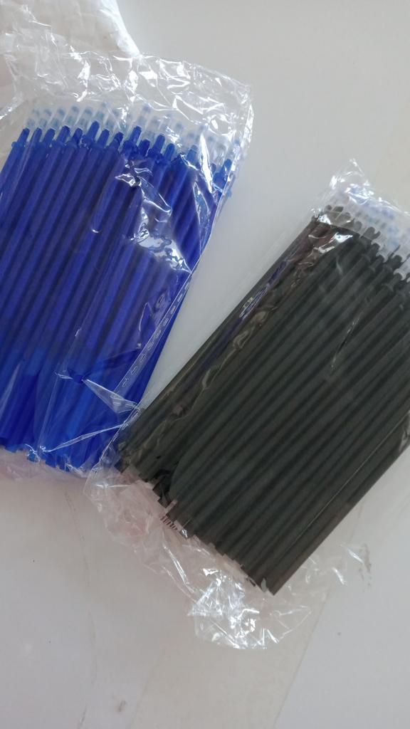 As hastes chegaram, está tudo bem. Eles se encaixam perfeitamente em nossa caneta. Eles escrevem e apagam bem. Graças ao vendedor e obrigado.