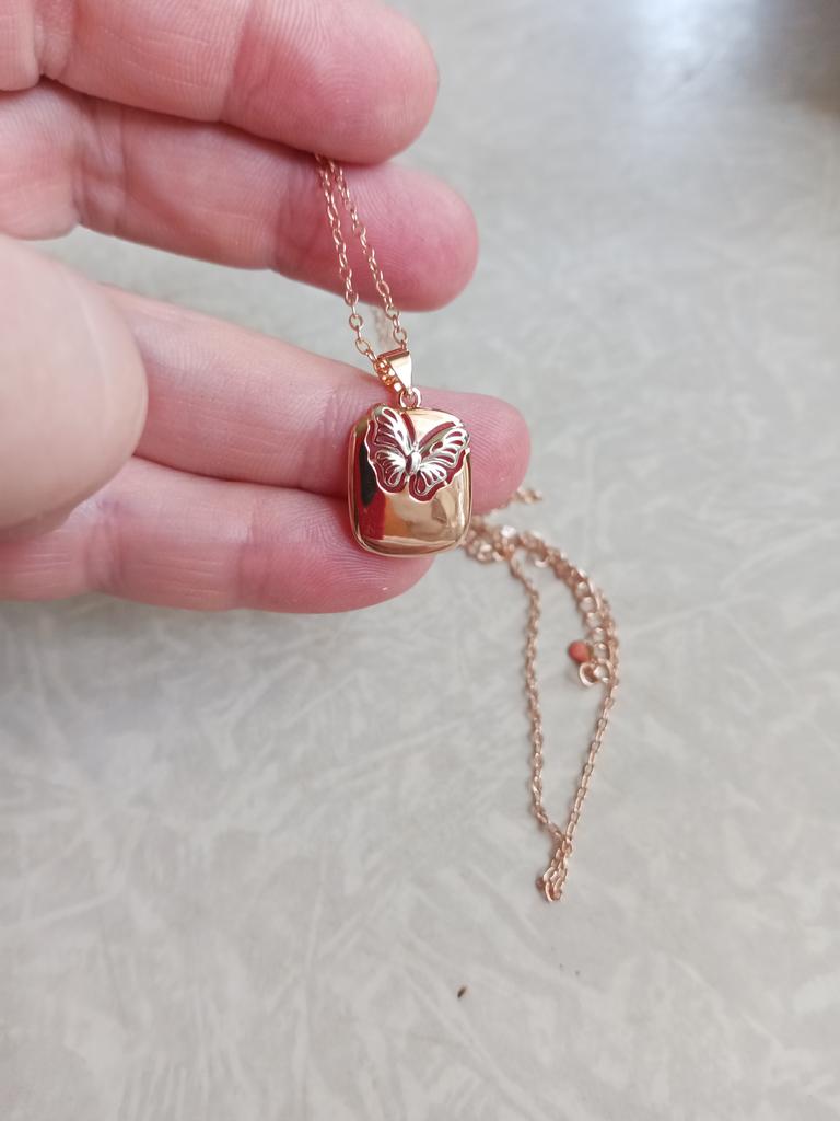 Um colar muito lindo e estiloso com pingente de borboleta, leve, parece bom, encomendei um anel com borboleta, o fecho é confiável, a corrente é ajustável, muito obrigado, recomendo o produto para compra