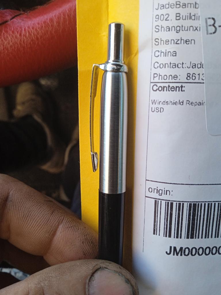 Excelente caneta, desculpe pela pasta preta. Escreve suavemente a recarga PARKER.