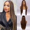 MERISIHAIR Moda feminina longa reta ombre vinho tinto peruca sem franja peruca dianteira do laço de fibra sintética peruca reta para mulher