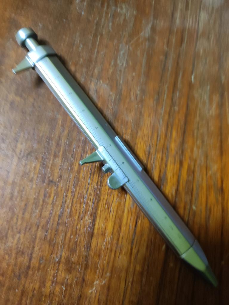 Parece um calibrador prático. Mas não tem nada a ver com o calibrador. A escala vernier coincide com a escala métrica e adicionalmente o zero é deslocado. Era para ser um gadget, e é uma chatice