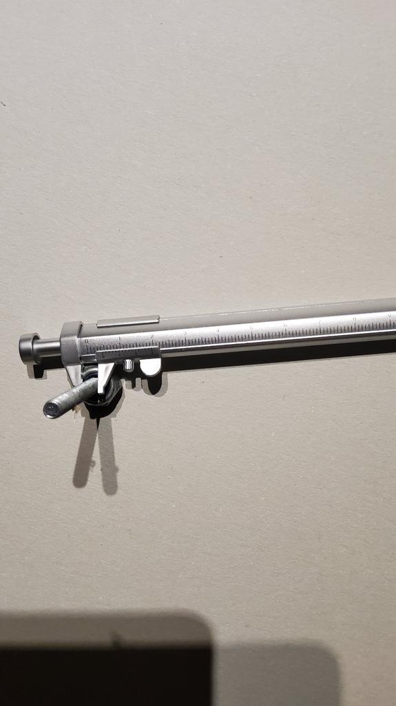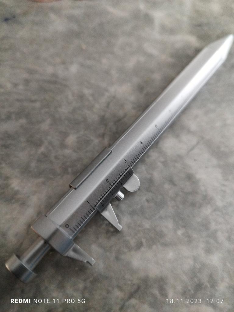 Conveniente para pegar itens pequenos quando o tamanho é importante. Foi possível fazer uma escala vernier (11 traços em vez de 16). A escala foi feita sem sucesso.