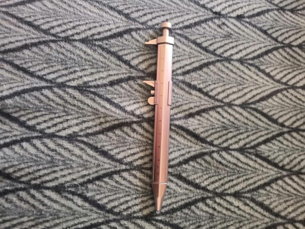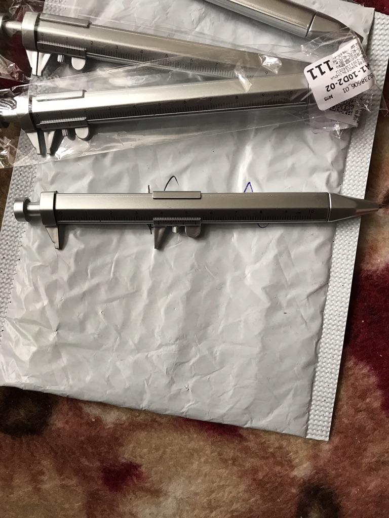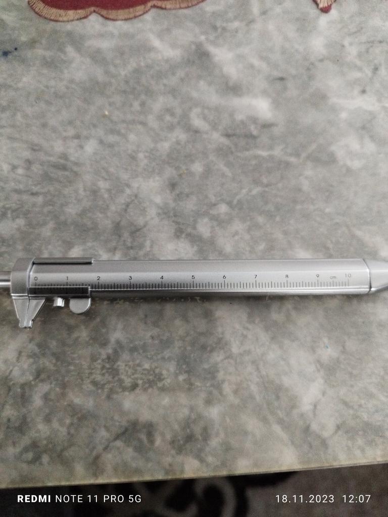Material: plástico, a escala é aplicada com tinta, é bastante precisa, com que rapidez vai esfregar - o tempo dirá, não tem parafuso de fixação - é um manequim. A caneta escreve perfeitamente. Por esse preço, é uma boa compra. O rastreamento é completo: desde a confirmação do pagamento até a chegada nos correios. Obrigado Joom!