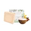 Sabonete com Leite de Coco, Açafrão, Rosa e Mel (Sabonete clássico luxuoso de leite de coco com Kesar, rosa indiana e mel) é um sabonete ayurvédico premium contendo leite de coco e extrato de açafrão, rosa indiana e mel, que hidratam intensamente a pele, iluminam e fazem com que pareça mais jovem. Alfa-hidroxiácidos, vitaminas e selênio no leite de coco combatem acne e espinhas e também ajudam a restaurar a pele após queimaduras solares.. O uso prolongado de sabonete ajuda a uniformizar a tez, reduzir marcas de cicatrizes e cicatrizes e dar maciez e brilho à pele..
