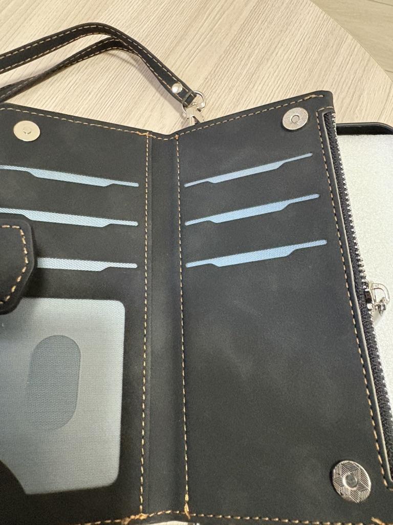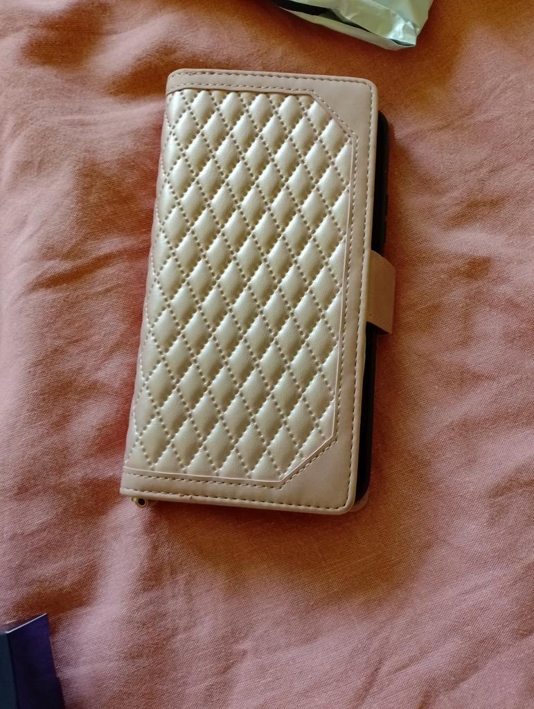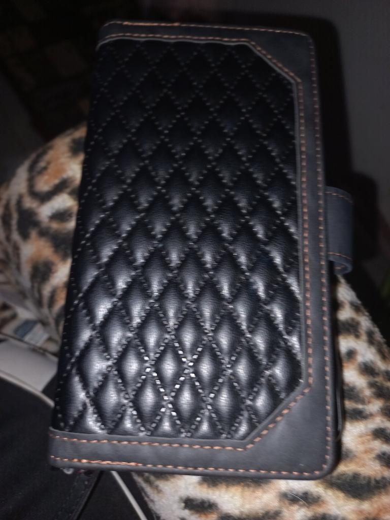 Linda capa de telefone, ótima para sair à noite em vez de bolsa de mão com muitos lugares para cartões e dinheiro.
