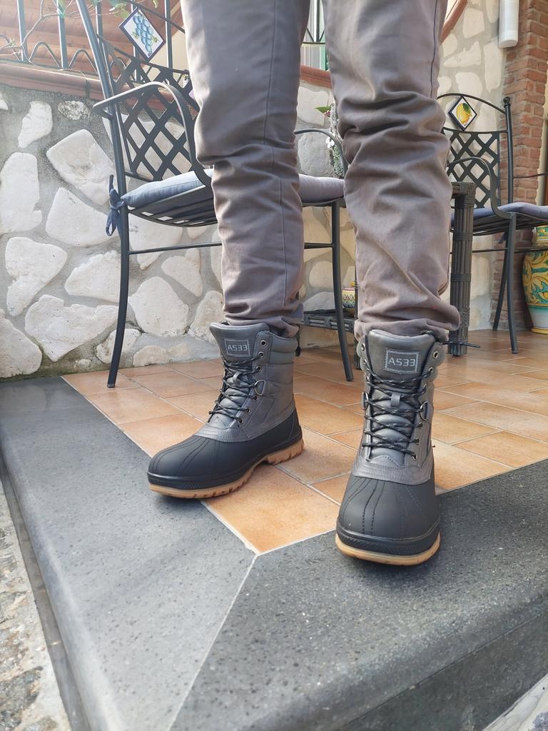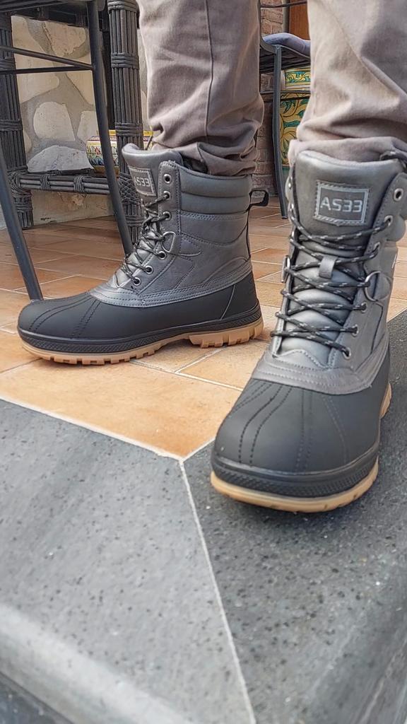 Botas para homens Marca: TUINANLE ⭐⭐⭐⭐⭐ Estas botas definitivamente merecem 5 estrelas! Estas são botas de alta qualidade! o video diz tudo! É à prova d'água. Ele mantém os pés aquecidos. E não faz os pés suarem como outros sapatos impermeáveis. Pode respirar porque o material à prova d'água está apenas na metade do caminho. É adequado para pescar, caminhar, acampar no outono e inverno. São muito confortáveis e têm sola antiderrapante. Recomendo vivamente estas botas 👍