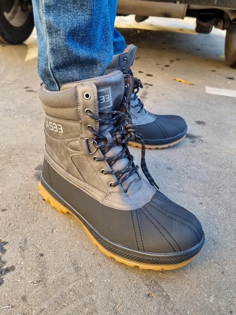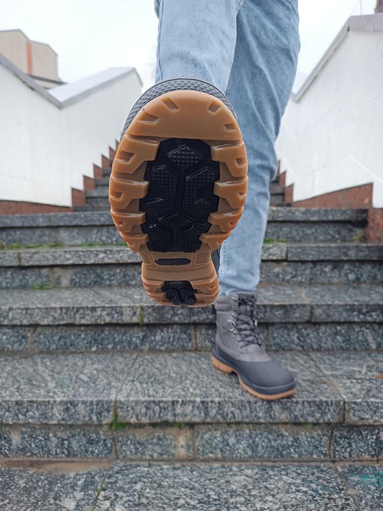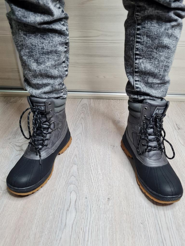 Botas masculinas Ideal para atividades ao ar livre e uso diário. Este calçado de segurança é criado a pensar nas necessidades dos homens que valorizam a qualidade e o conforto. Os de meia estação são confeccionados em couro ecológico, o que garante durabilidade e aparência atraente.. Confortável de usar em qualquer época do ano graças ao design de meia estação. O modelo é altamente durável e confiável, o que o torna adequado para uso em diversas condições, inclusive caça e pesca. Também é adequado para tarefas táticas, o que enfatiza a sua versatilidade. Os sapatos protegem os pés do frio e da umidade em todas as condições climáticas. O modelo se caracteriza pela comodidade para longas caminhadas ou atividades ao ar livre. Suporte confiável para o tornozelo, o que é especialmente importante ao se movimentar ativamente em superfícies irregulares. Também vale destacar o design estiloso, que os tornará um excelente complemento para qualquer look.