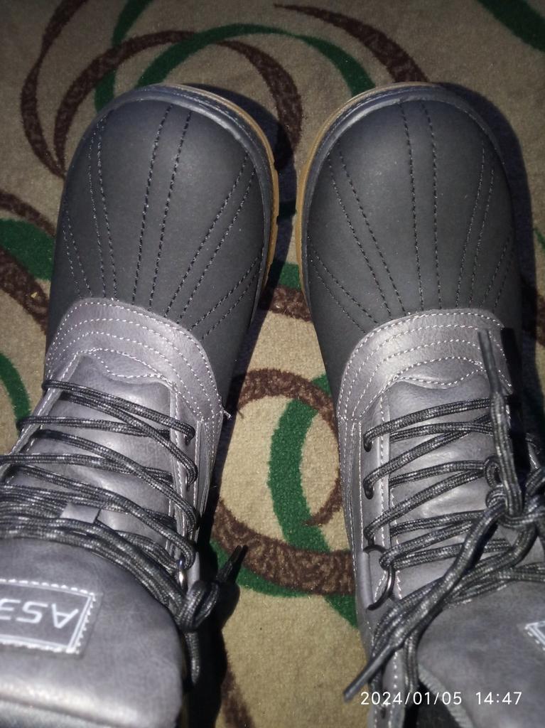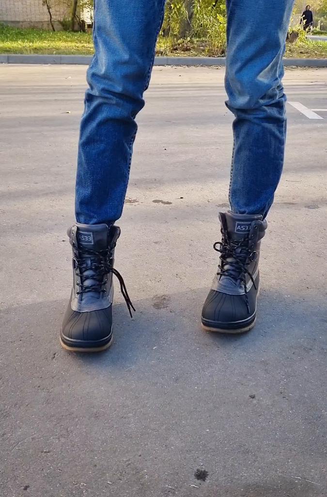Botas confortáveis de meia estação masculina Peguei tamanho 42 Perfeito para uma perna de 26,5 centímetros Há um pouco de cheiro, mas está desgastado A sola é de borracha A parte interna do sapato é de tecido Cadarço ajustável Fabricado em couro ecológico e material que não molha Muito confortável para caminhar Caberá na largura média da perna. Para o outono, veremos exatamente o que é necessário para o inverno, pois ainda não sabemos se será adequado para geadas Muito obrigado para o vendedor e para você Entrega três semanas