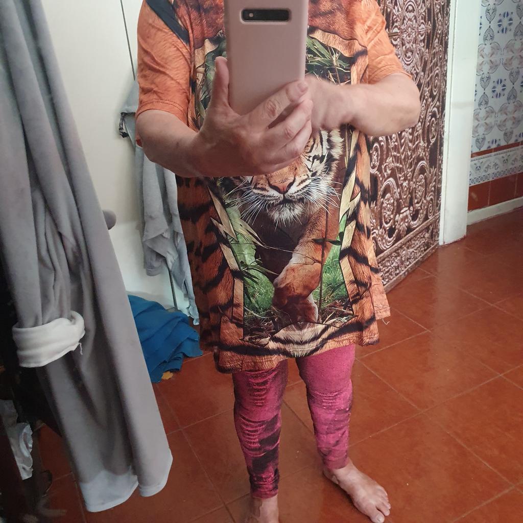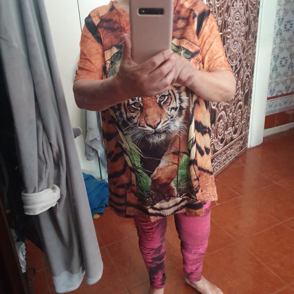 Plus size feminino verão tigre impresso confortável manga curta gola redonda camiseta casual folgado comprimento médio camisetas