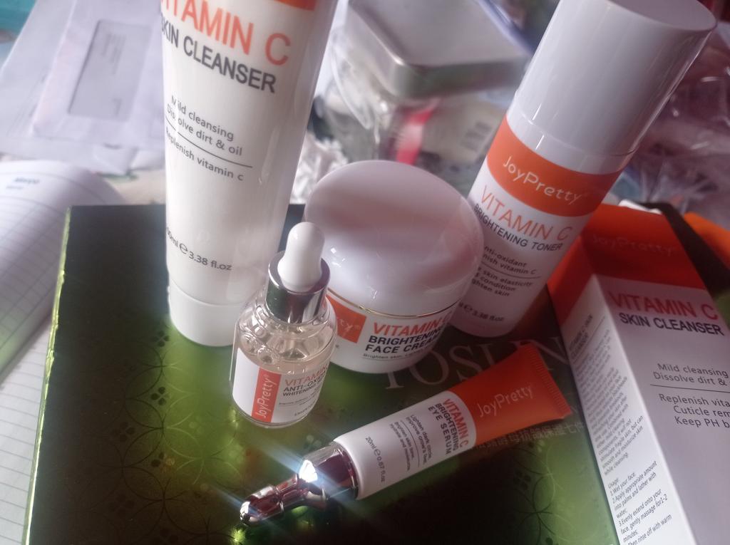 JoyPretty Conjunto de cuidados com a pele do rosto com vitamina C para clareamento do rosto, soro toner para iluminar, hidratante, limpador facial, soro para os olhos