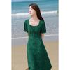 Vestidos vintage estampado manga bufante verão praia vestidos doces casual gola quadrada floral maxi vestido longo festa
