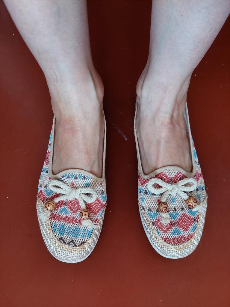 Estes sapatos são tão fofos, mas talvez seja melhor usá-los com meias, pois o material é um pouco áspero