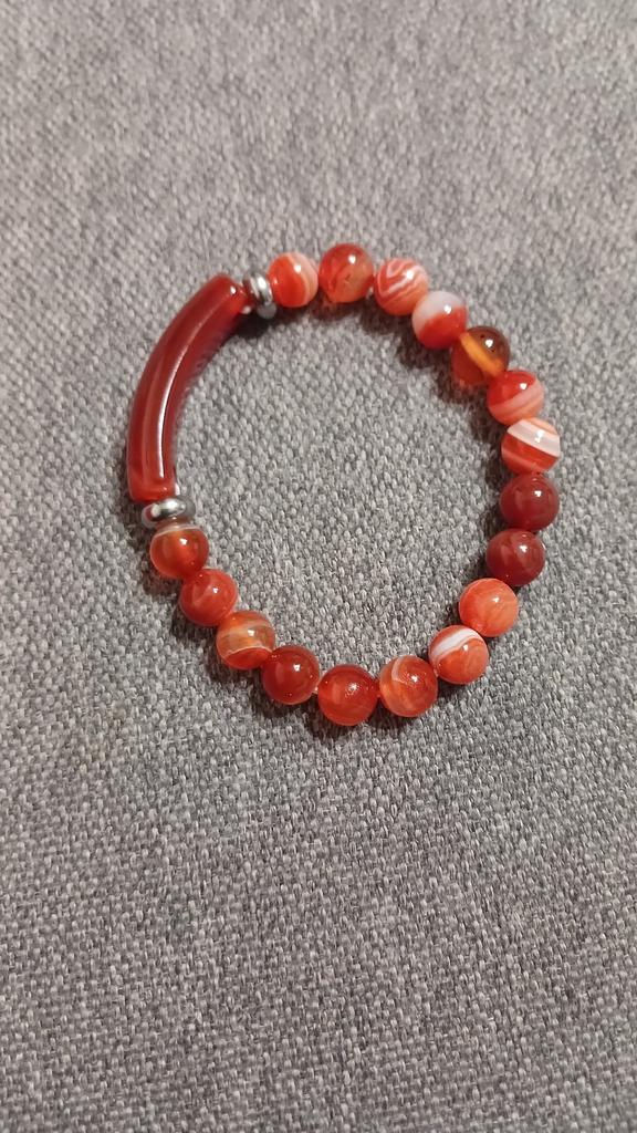 Esta pulseira é boa, sem defeitos. Recomendo, mas a pulseira é composta por 17 contas pequenas medindo 0,6-0,7 cm e uma pedra de 3,5 cm de comprimento, para minha mão 16,5 cm é o ideal, e uma mais cheia seria pequena ou próxima.