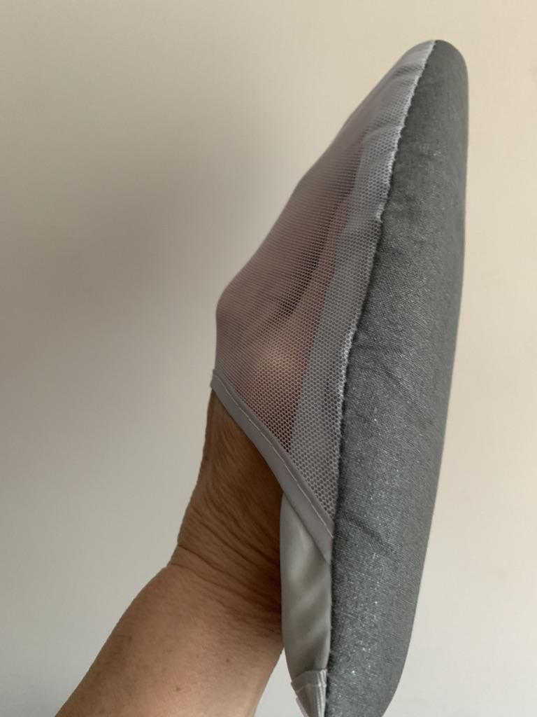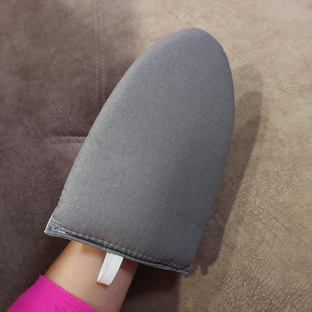 Vaporizador para roupas. Ajuda muito a não queimar a mão ao passar as roupas a vapor. Grossa, macia. Atrás tem um orifício para o dedo, para que fique firme na mão. Uso todos os dias. Ajuda a passar a vapor as costuras perfeitamente sem vincos, golas, punhos. E se houver amassados grandes, é mais conveniente passá-los nela.