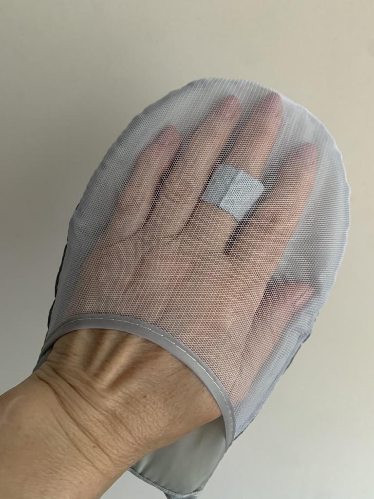 Uma excelente luva para vaporizar roupas. Há uma alça para o dedo para ajudar a segurar.