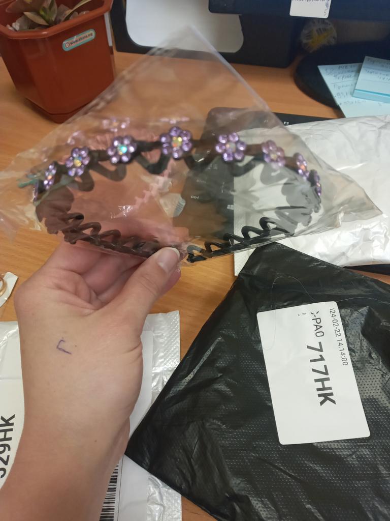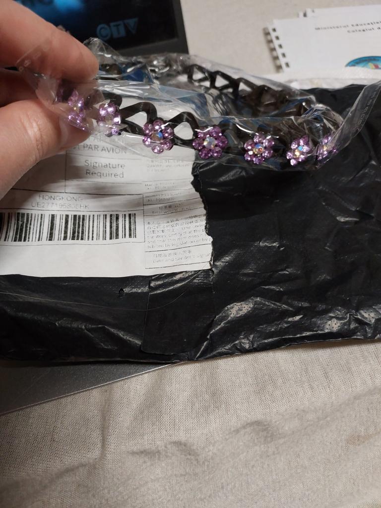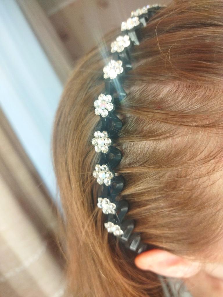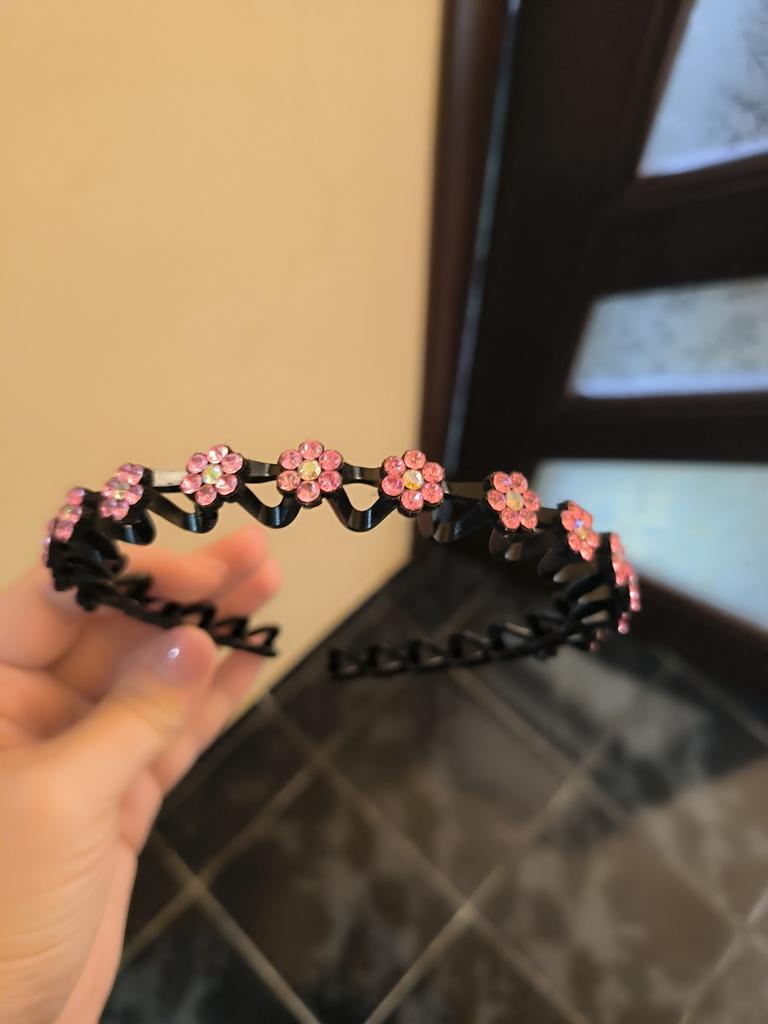 Recebi-os com um pequeno atraso, mas está tudo bem. A tiara é linda. A faixa é feita de plástico, por isso não pressiona a área da têmpora.