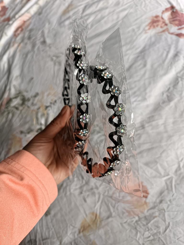 Argola muito bonita. Quase não é sentido na cabeça, mas segura muito bem o cabelo. Recomendo especialmente para quem solta a franja. As pedras estão todas na cidade e brilham incrivelmente lindamente. Obrigado Jum.