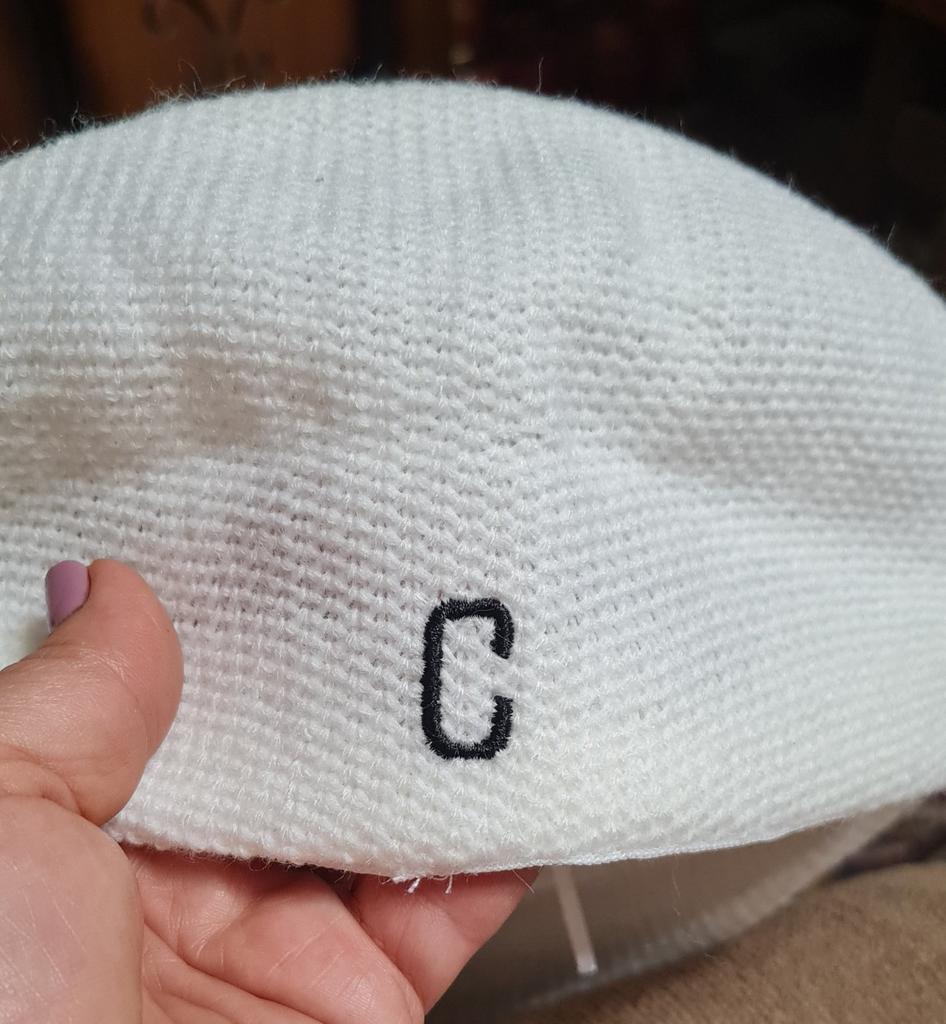 A tampa é super!!! A viseira está colada e não sai. Cor branca. O tricô é bem justo. Não haverá muito calor vindo do boné, mas por beleza)))) Tenho um perímetro cefálico de 58. Há um cordão dentro do boné para apertá-lo se for muito grande em volume.