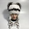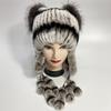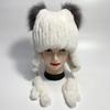 Chapéus de pele de coelho natural para mulheres, abas de orelha, rabos fofos, chapéu de inverno quente e estiloso