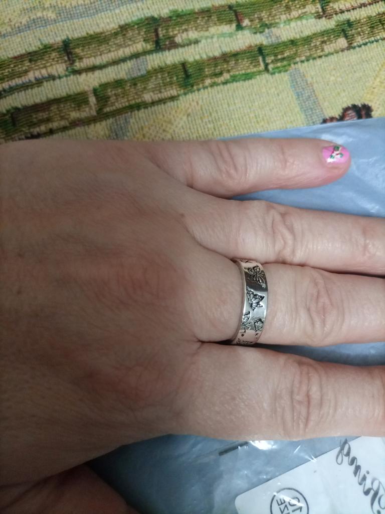 O anel é simpático. Com gravação de borboletas. E é exatamente o tamanho certo!😘🤗👍🏻!!!