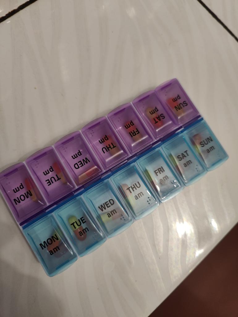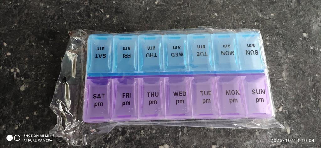 Super. Exatamente o que eu precisava. Organizei minhas vitaminas, agora é conveniente levar para o turno de 2 semanas e usar em casa ou em viagens. Plástico resistente, bons fechos.