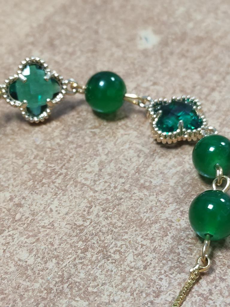 Pulseira de crisoprase feminina na moda pulseira de trevo