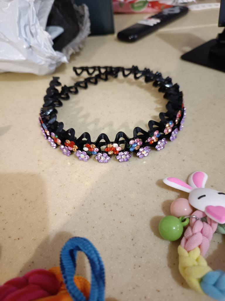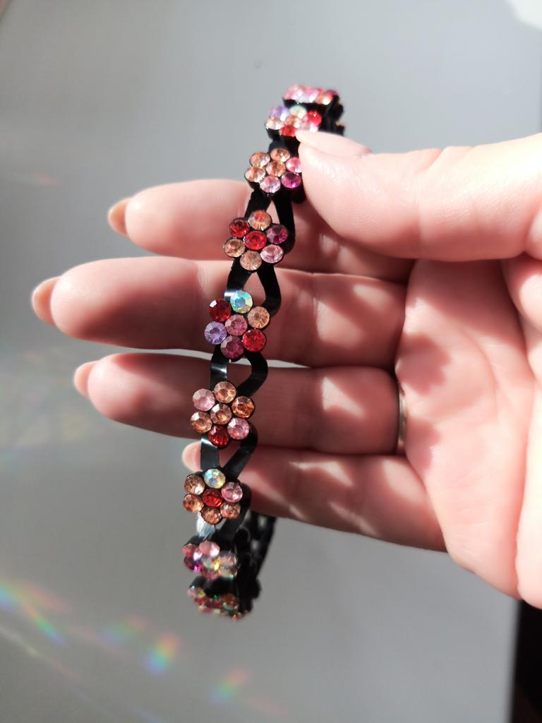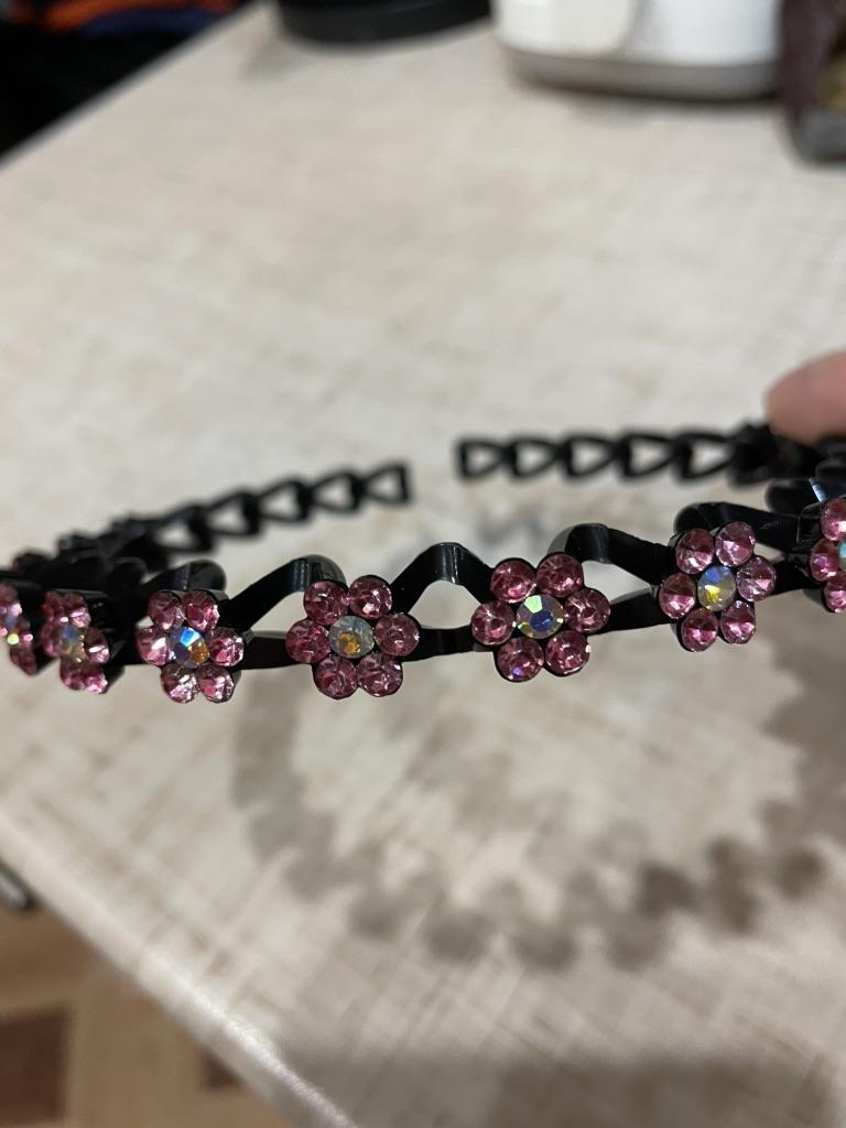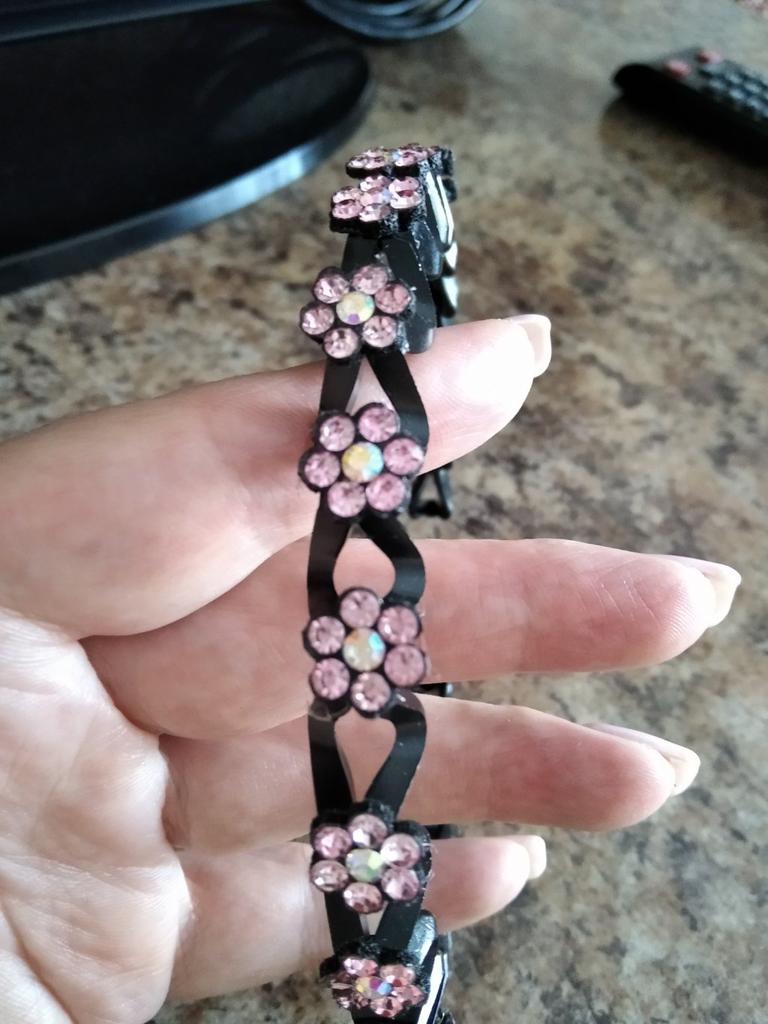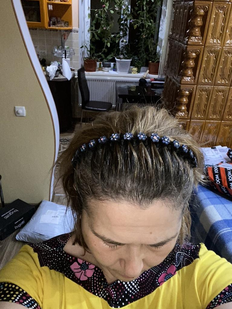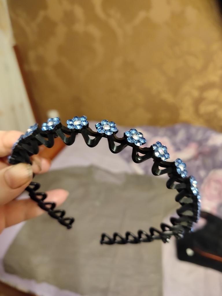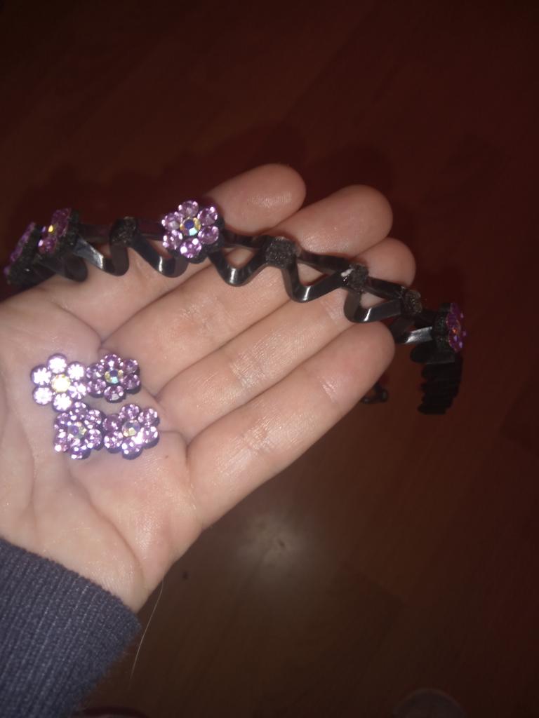 Parece muito brilhante, bonito, de alta qualidade, não pressiona a cabeça, segura o cabelo.