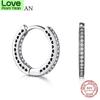 Brincos de Argola Coração Pavé de Prata de Lei 925 Autêntica para Mulheres Joalheria Fina Brincos de Prata S925 da Moda