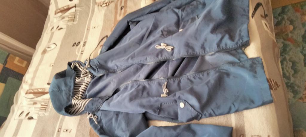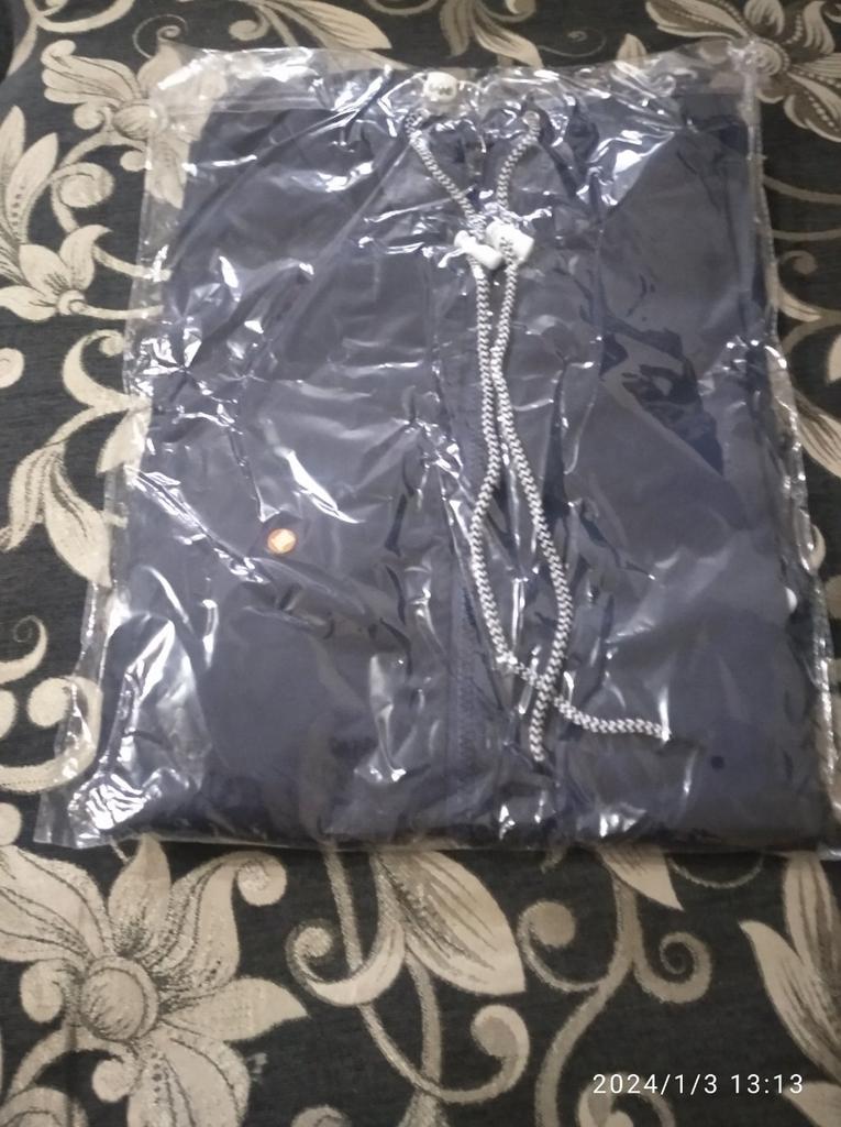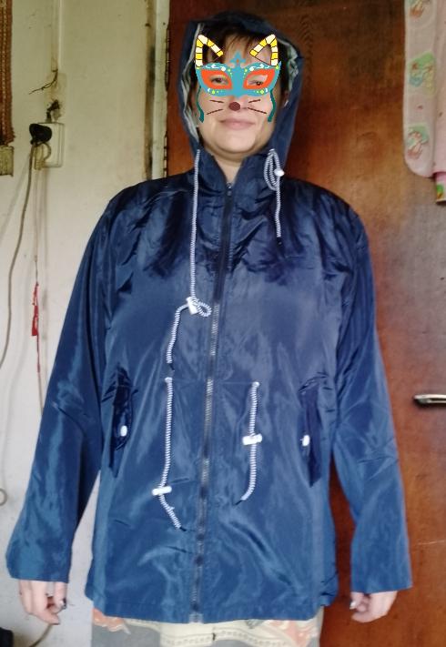 É muito pequeno, cerca de 2 tamanhos. As mangas são muito apertadas - terei que ajustá-las. Bem, em termos de qualidade, a jaqueta parece uma capa de chuva clássica.