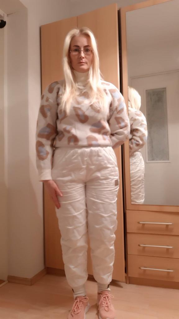 Eu simplesmente amo essas calças!🥰 Já quero todas as cores! Foi apenas cerca de 20 ° F fora e eu os usei apenas para caminhar até o Burger King (eu costumo dirigir), mas testá-los para ver como eles me mantinham aquecido, foi meu desafio e essas calças são tão quentes e muito confortáveis também !! Adoro o branco, a etiqueta cosida no bolso, os tornozelos afunilados e os desenhos em "V" por todo o lado. Parecem calças bufantes e calças de neve, como aquelas que usávamos quando crianças, mas são mais modernas e elegantes e não são apenas para brincar na neve! Na verdade, por ter os brancos, eu não brincaria na neve, nesses. Esses são legais demais! Adorei o preço também! Muito obrigado, Equipe Joom!!🥰