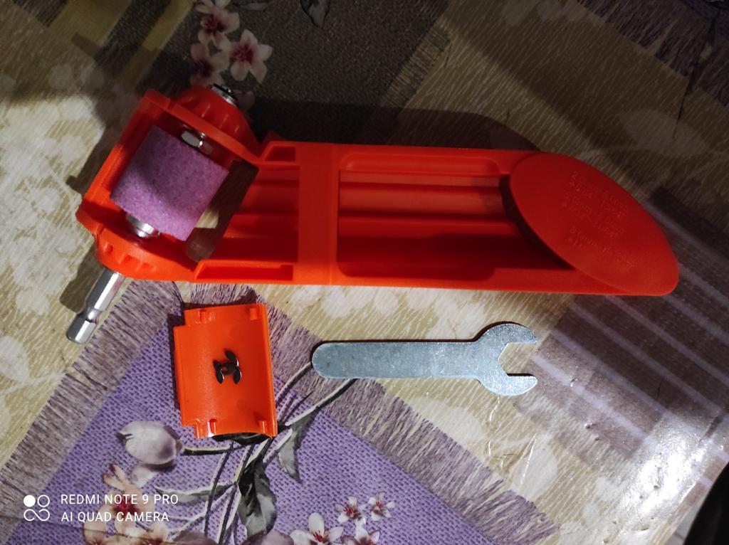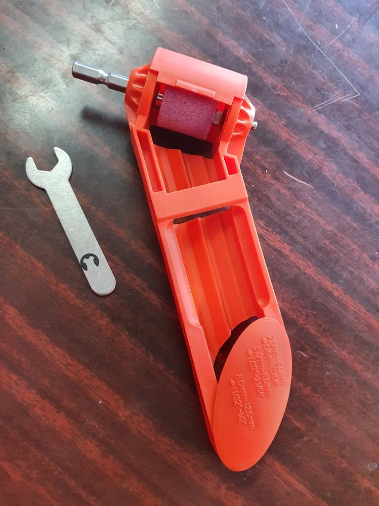 O que se poderia esperar de um brinquedo da China. Você não pode segurar a furadeira em uma posição. O ângulo não corresponde à afiação de novas brocas. Um belo detalhe em um conjunto de coisas desnecessárias.