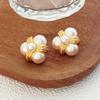 Brincos de pérola brilhante, estilo retrô, grama de quatro folhas, água doce, prata 925, brincos de metal