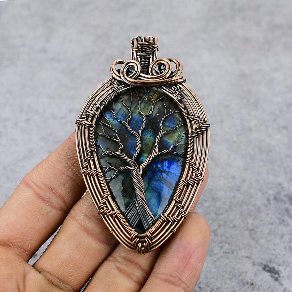 Pingente de joias feitas à mão com pedras preciosas de labradorita e cobre puro