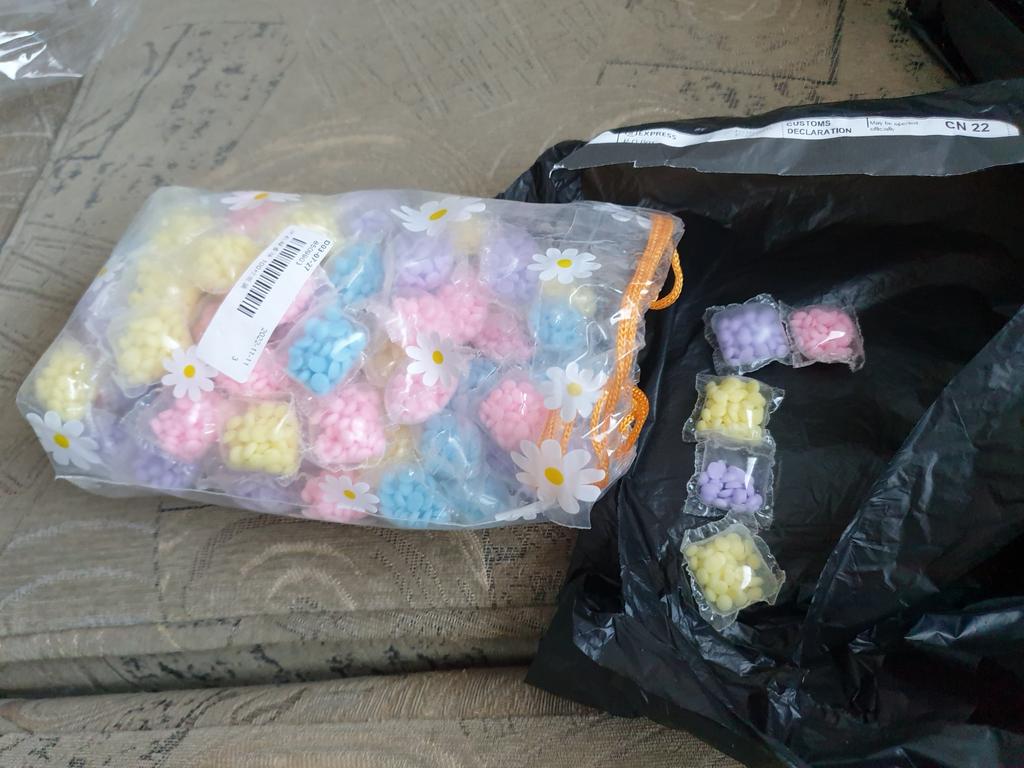 Cheira bem. Pequenas bolas cheias de fragrância.