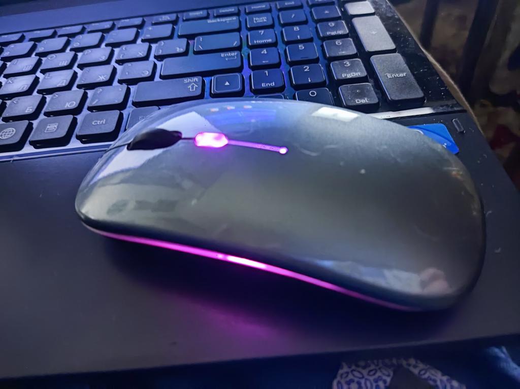 Minha filha usa esse mouse há 2 anos, sem queixas, deu um laptop para minha neta e depois adicionou um mouse muito bom. Adaptador Bluetooth e bateria embutida. Um cabo de carregamento curto está incluído. Ele brilha em verde durante o carregamento (foto) e muda de cor durante a operação. Um bom mouse (confortável) e por esse preço