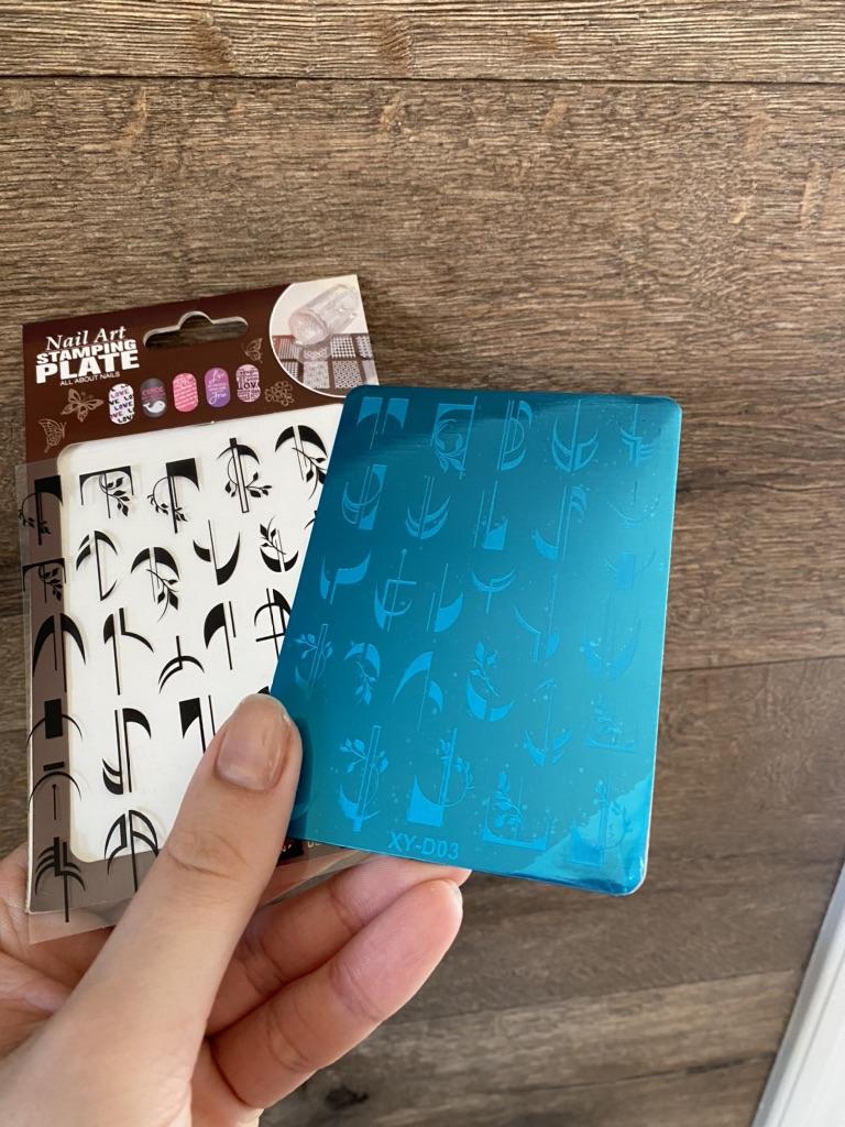 Molde francês para estampagem de unhas, placa geométrica, linha flor, carimbo de renda, ferramentas de estêncil