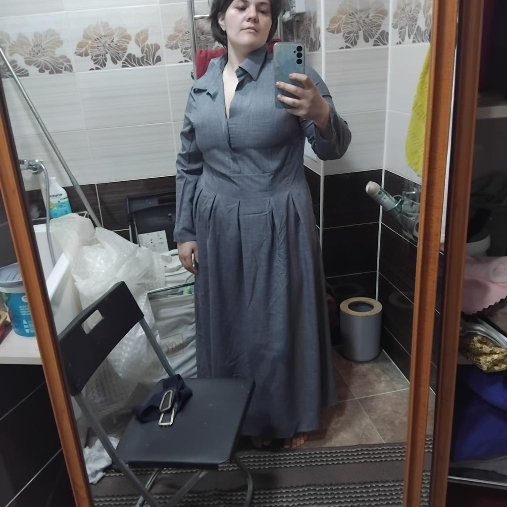 Está tudo bem, o tamanho cabe no nosso 52. A única questão é: por que não há pregas no peito nas suas roupas? Por causa disso, surge um problema em mulheres com seios maiores que 2