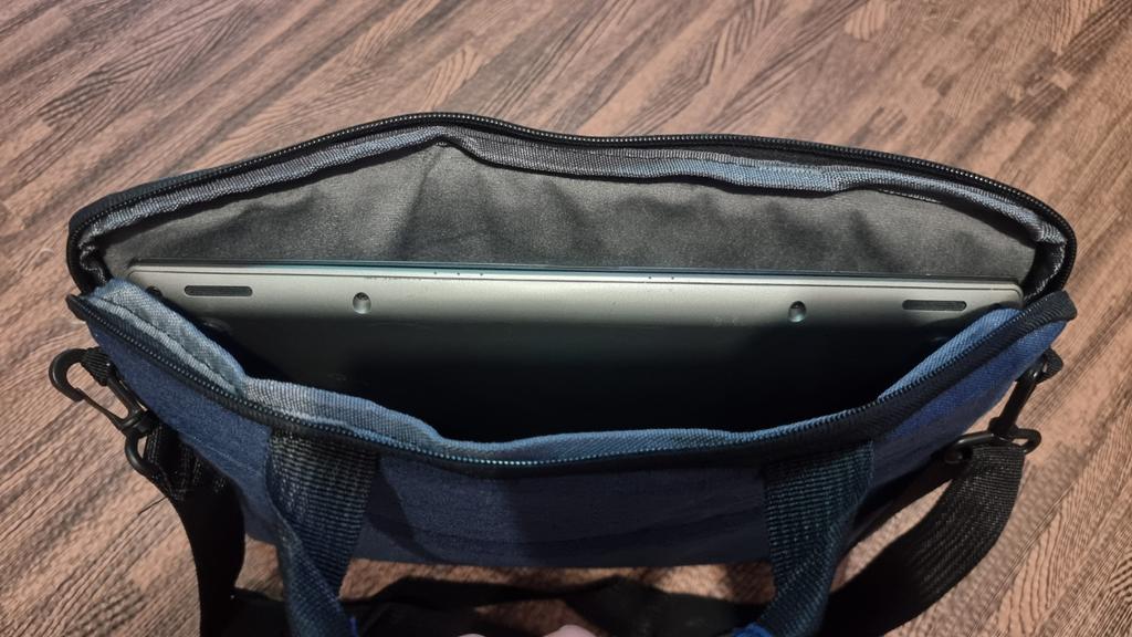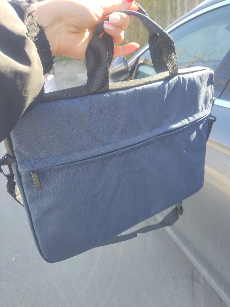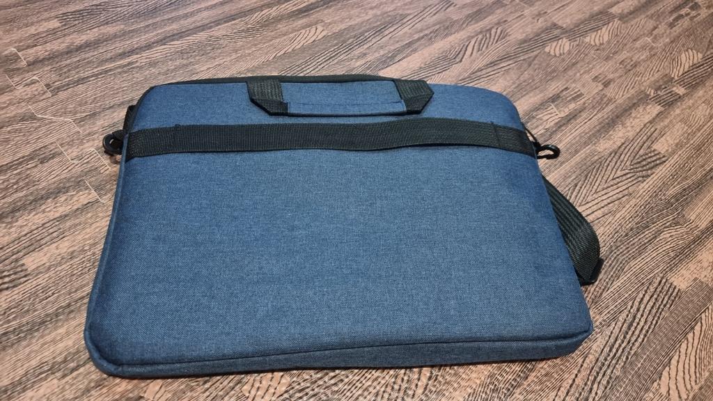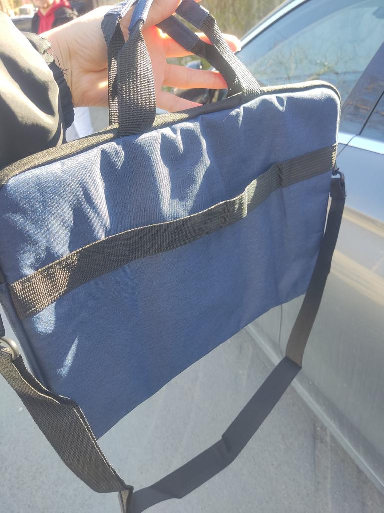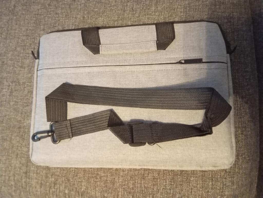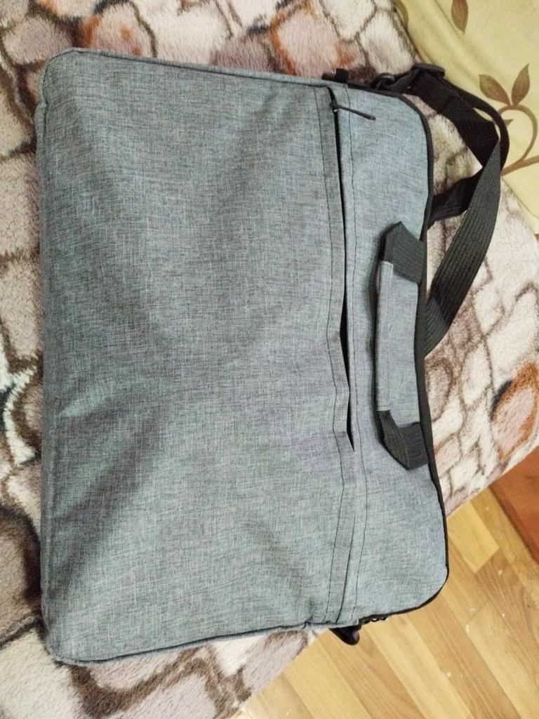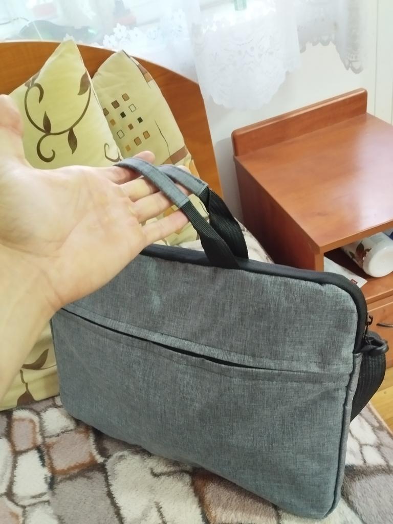 O case do laptop é como descrito. O tecido é bom, costurado com capricho, os fios não ficam para fora, só um pouquinho no cinto, não tem cheiro. Na foto, coloquei um laptop, um carregador e um mouse na bolsa, ela parece bem compacta. A alça é presa à bolsa com uma fina fita de colza - não muito adequada para ser usada, por exemplo, no ombro ou na transversal. No geral, gostei do produto.