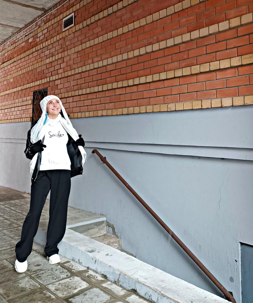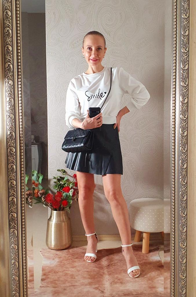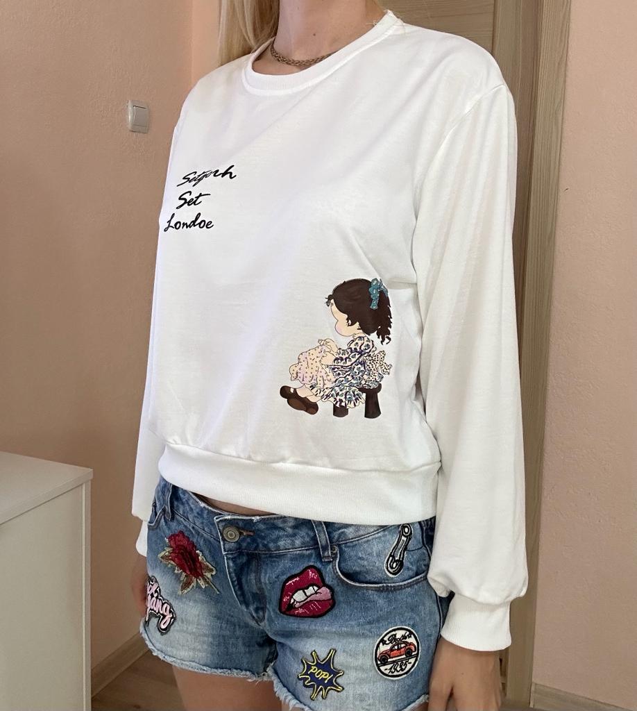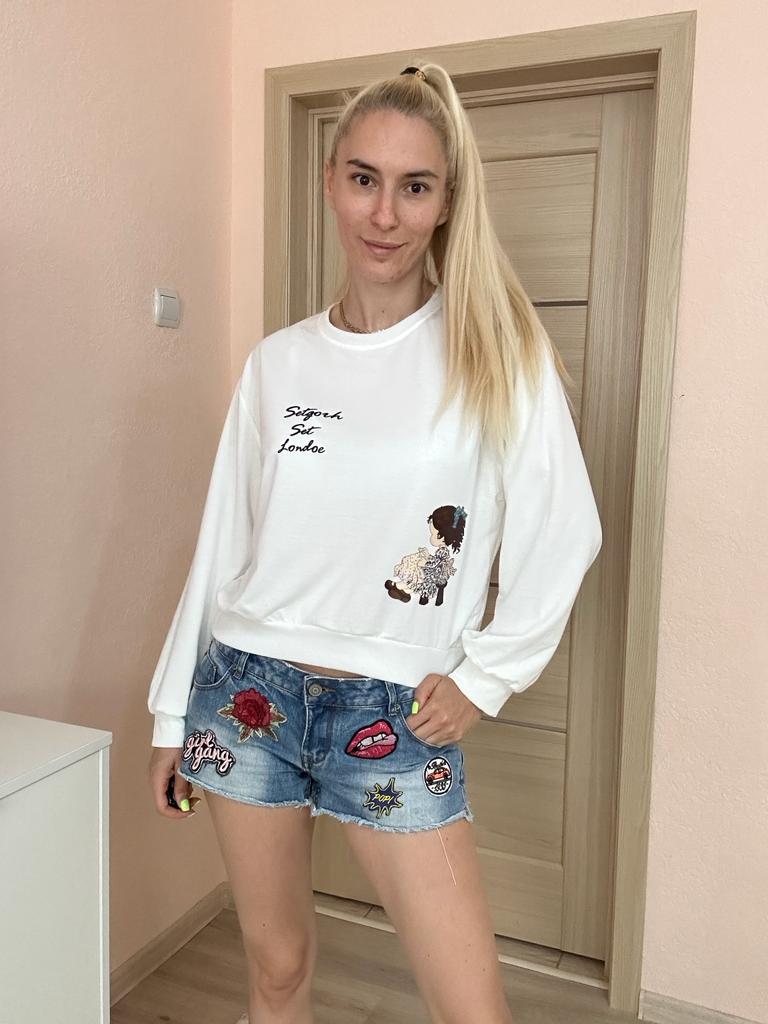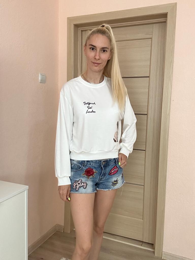 Uma blusa muito legal com uma inscrição. Minhas configurações: Altura 156 cm. Circunferência do peito 94, sob o peito. 80 cm Circunferência. cintura 74 cm. Eu uso tamanho XXL