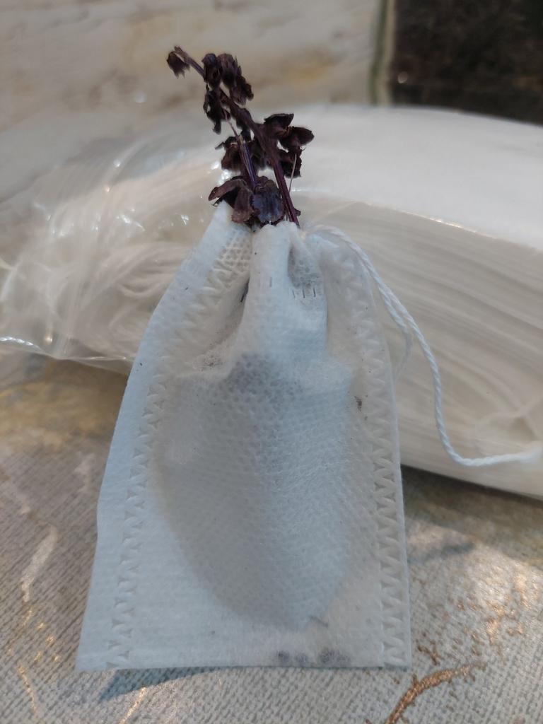 Ótimo, preenchi-os com lavanda contra insetos no armário. O chá está perfeitamente limpo