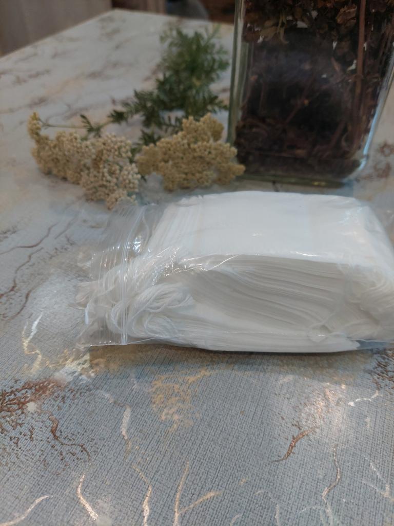 Saquinhos descartáveis👍🌼podem ser usados para chá, especiarias, incenso, acho que serão úteis em casa. Têm cordões para apertar e fixar o saquinho. Recomendo!