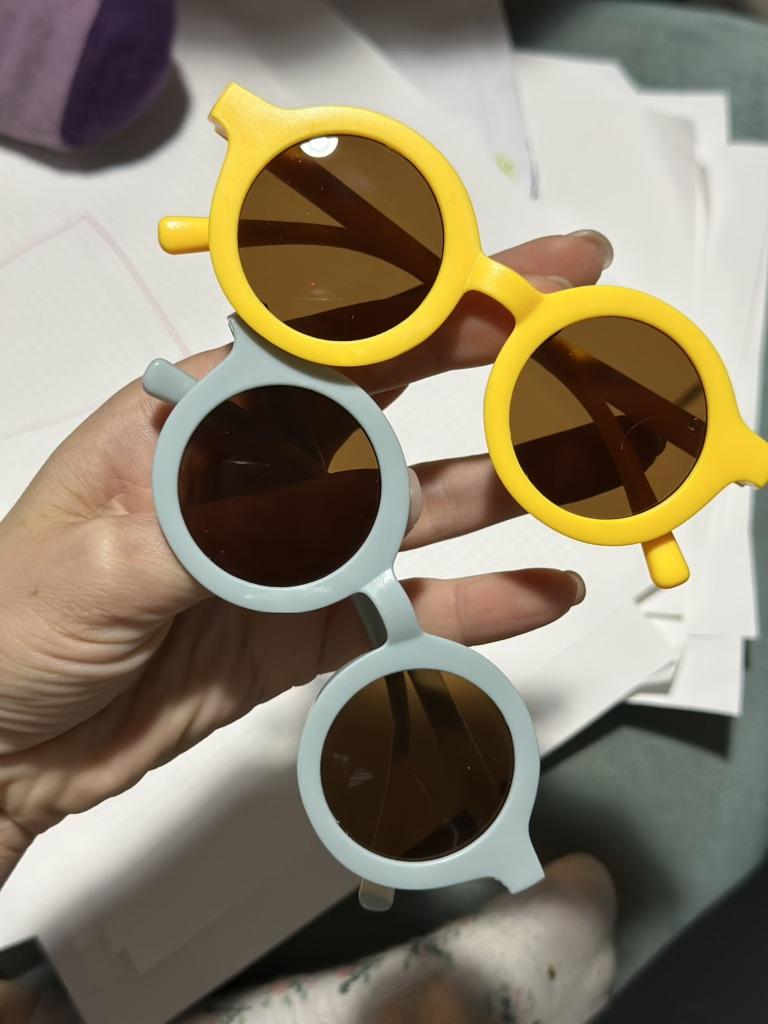 Os óculos são bonitos. Experimentei-os no meu menino de 1 ano e ficam-lhe grandes nas orelhas, caem. Vou experimentá-los no meu menino de 3 anos. A um deles certamente estes óculos servirão. Adiciono fotos depois de os usar. Obrigado.