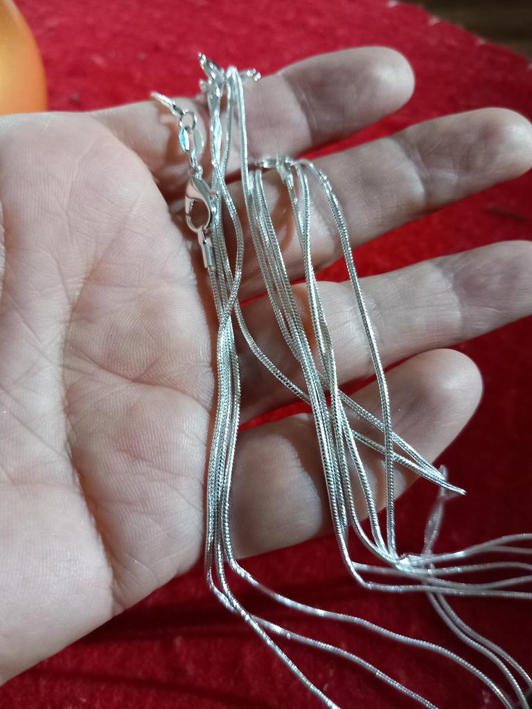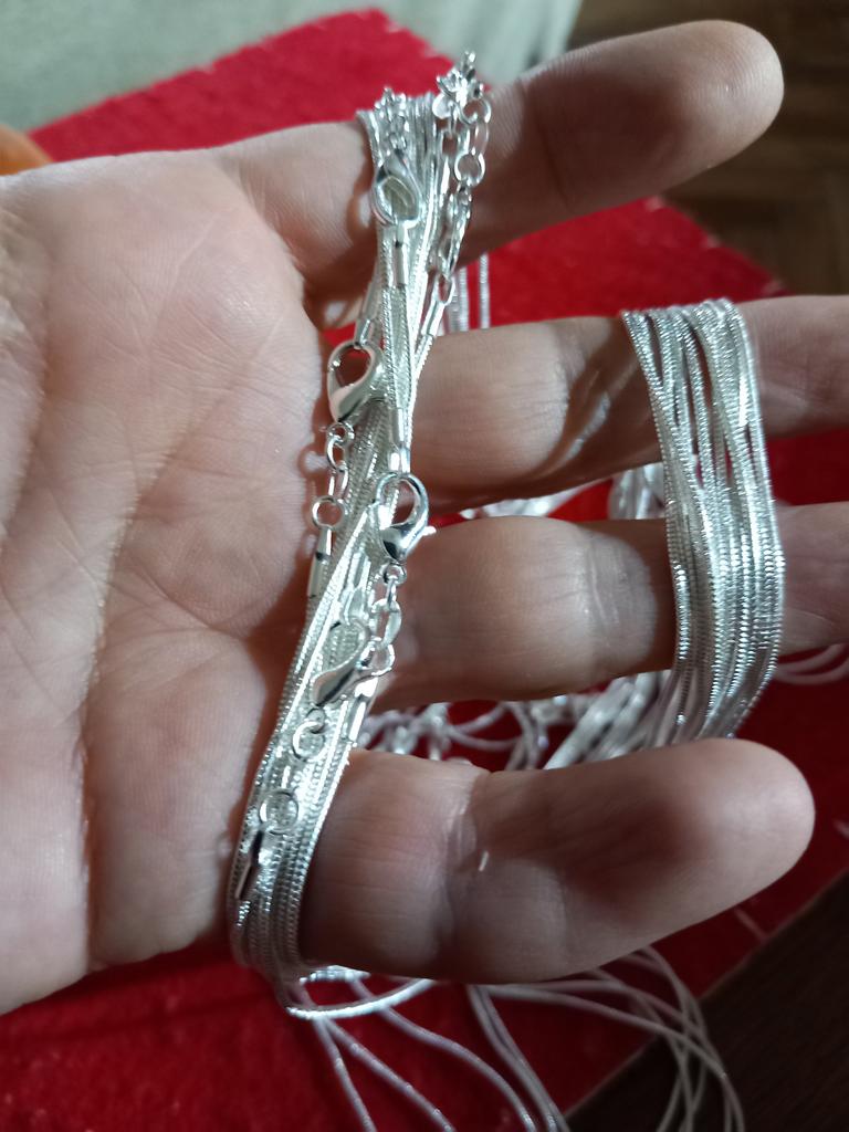 Colares de prata muito bonitos, tenho algumas pedras preciosas que não uso porque não tinha nada para colocá-las, portanto, são perfeitos.