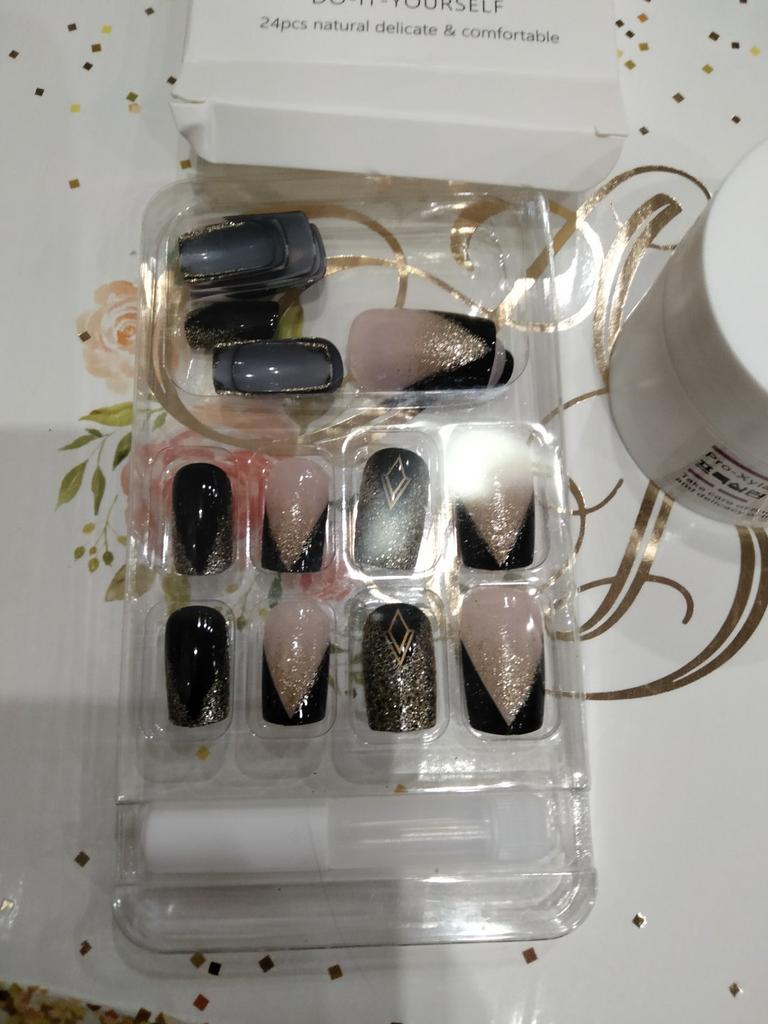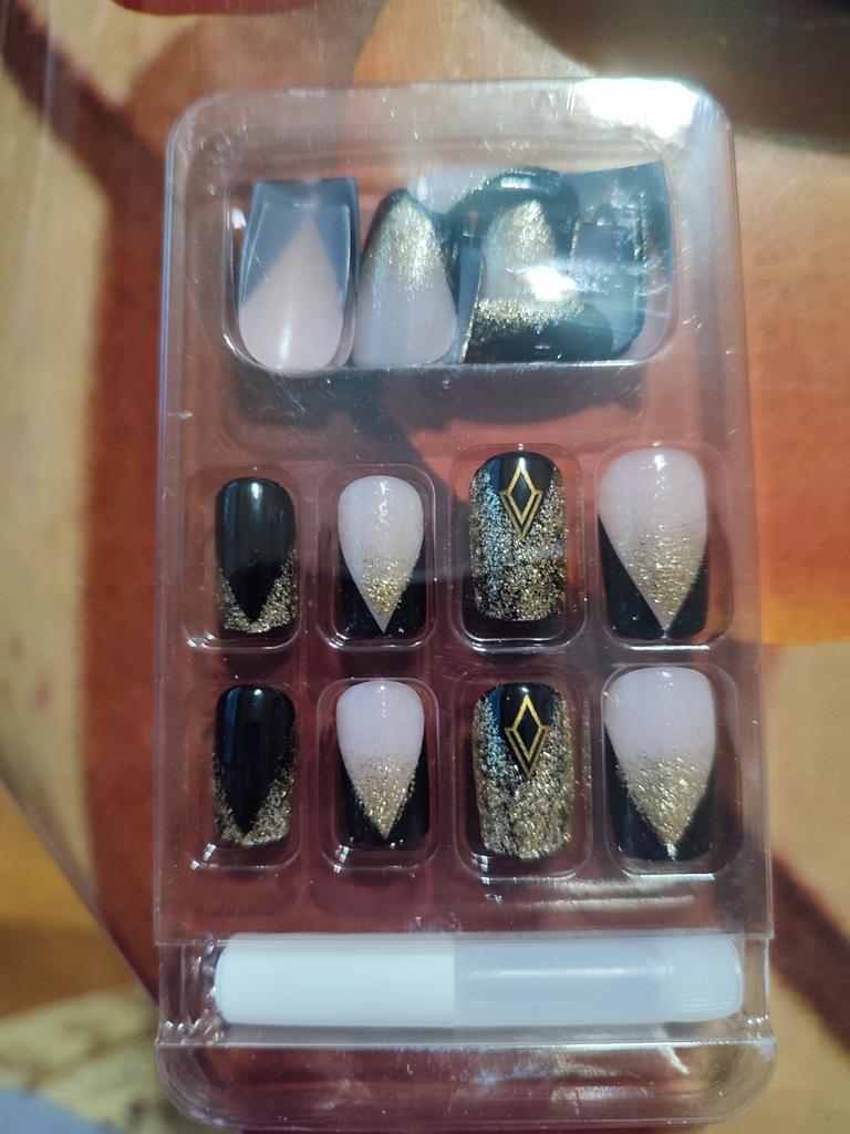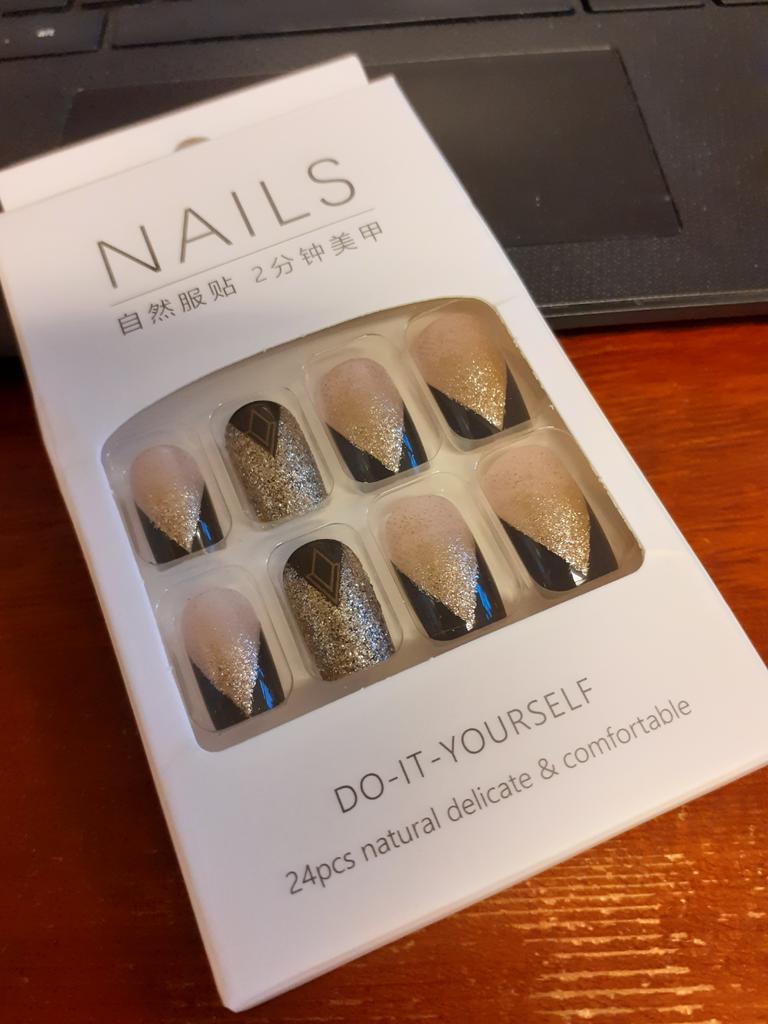 As unhas são lindas. O kit contém apenas cola. Ainda não usei, espero que aguente bem.