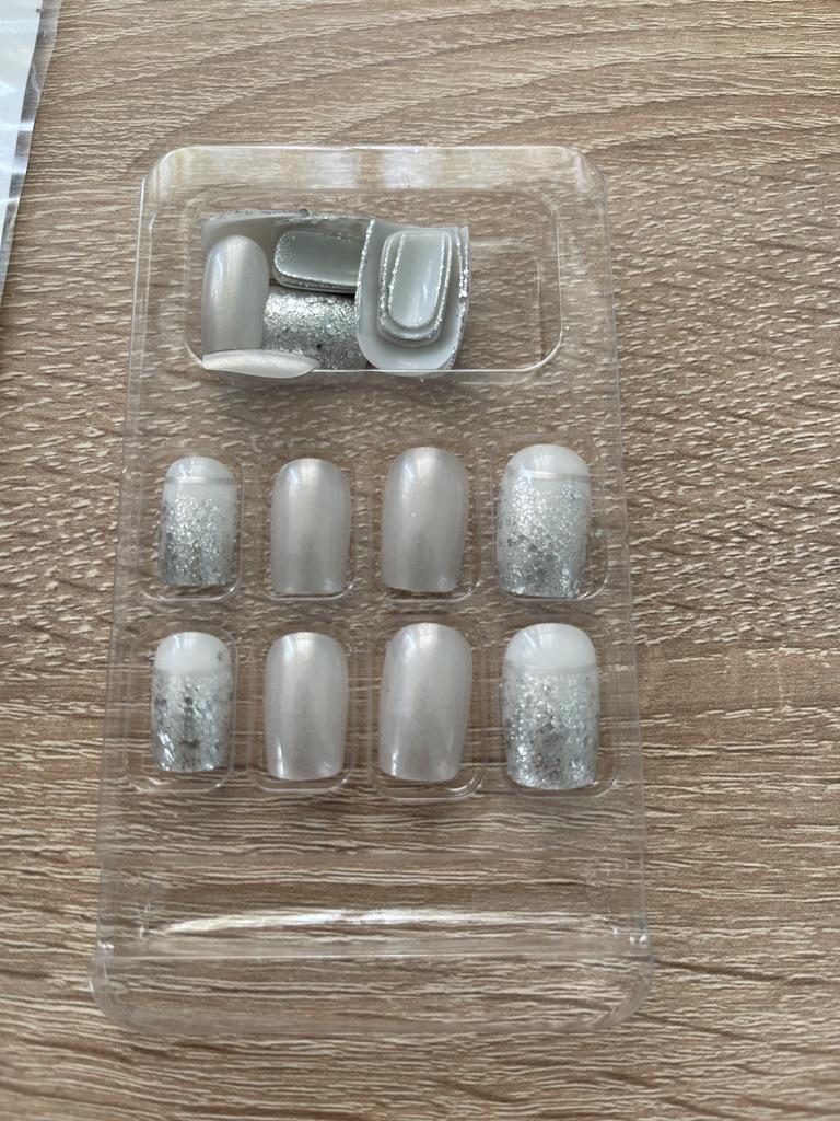 24 pçs unhas falsas quadradas curtas com geléia adesivo glitter gradiente design destacável unhas falsas cobertura completa imprensa em unhas